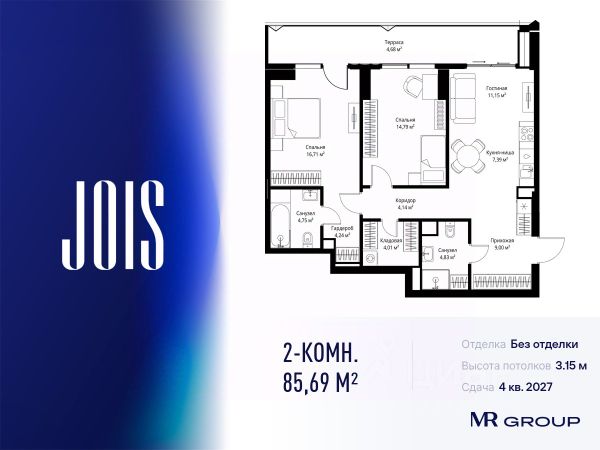 10 минут от Москва-Сити В продаже квартира площадью 72.90 м² с предчистовой отделкой на 26 этаже 55 этажного дома. Квартира расположена в корпусе Anna. JOIS это премиальный жилой комплекс от девелопера MR Group в районе Хорошёво-Мнёвники. Он включает несколько эффектных небоскрёбов высотой 47-56 этажей, эксклюзивные форматы квартир с панорамным остеклением, подземный двухуровневый паркинг на 239 м/м, собственную приватную инфраструктуру, закрытый ландшафтный парк 2,3 Га с функциональным зонированием и охраняемой территорией. Над проектом работали лучшие команды международных агентств с многолетним опытом: Genpro, S&P, iLight International и другие. Расположение Пешком: - 5 мин. ст. МЦК "Хорошёво"; - 15 мин. ст. м. "Народное ополчение"; - 10 мин. ст. метро "Звенигородская" с 2027 года; - 20 мин. причал "Карамышевский". На автомобиле: - 3 мин. до Звенигородского шоссе; - 5 мин. до ТТК: - 8 мин. до Серебряного бора и Строгинского затона - 10 мин. до ММДЦ "Москва-Сити"; - 40 мин. до аэропорта "Шереметьево"; Благоустройство - собственный ландшафтный парк 2,3 Га; - парк скульптур от Cosmoscow; - консьерж-сервис 24/7; - сервисный лифт и вход; - игровые и спортивные площадки; - коворкинг с библиотекой; - лаунж-зона с камином; - игровые комнаты для детей и клуб для подростков с оборудованием для видеоигр; - спортивная студия для индивидуальных тренировок; - гостиная с мини-кухней; - зоны для выгула собак; - подогрев пешеходных дорожек в зимний период; - автополив зелёных насаждений; - премиальные рестораны, кафе, химчистки, аптеки и супермаркеты. Окружение - 4 парка: Покровское-Стрешнево, Филёвский парк, Серебряный бор и Берёзовая роща; - 15 общеобразовательных заведений, в том числе две школы из самых лучших в Москве: государственная школа "Интеграл" и частная "Хорошкола"; - спортивное сооружение "ВЭБ Арена", домашний стадион ФК ЦСКА; - крупнейший в Европе торгово-развлекательный центр "Авиапарк".