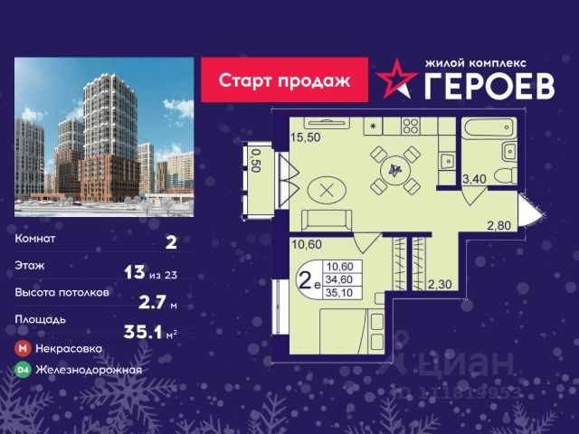 Также, к вашим услугам: 4 общеобразовательные школы, 7 детских садов, спортивные и танцевальные, школы, поликлиники, множество магазинов и супер-маркетов, включая Ашан и несколько крупных ТЦ в шаговой доступности.