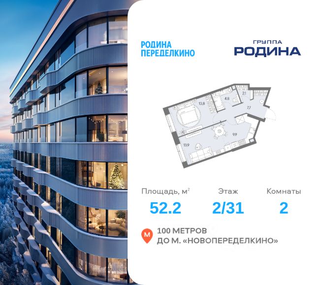 Продаётся 2-комнатная квартира в сданном доме (Корпус 2 (2 очередь)), срок сдачи: III-кв. 2024, общей площадью 62.5 кв.м., на 11 этаже. Современная квартира в жилом квартале комфорт-класса, расположенном в 3 минутах ходьбы от м. Рассказовка, в одном из самых благоприятных, с точки зрения экологии, районов города.