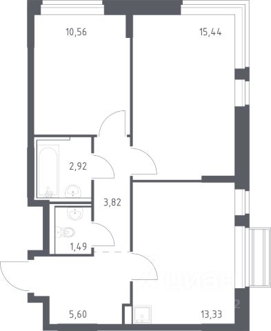 Продается 2-комн. квартира площадью 63,7 кв.м на 3 этаже 24 этажного дома в ЖК "Союзный" от федерального девелопера ГК "Вектор".