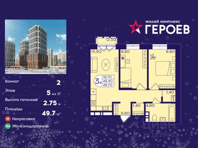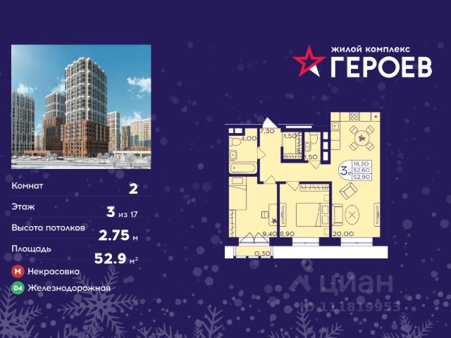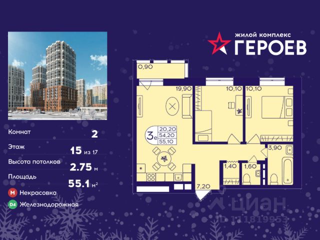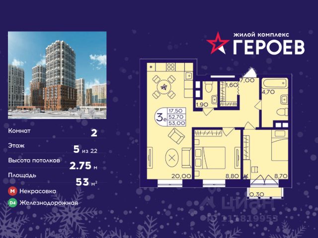 Продаётся 2-комнатная квартира 53.00 кв. м. в жилом комплексе "Героев" в Балашихе, Железнодорожный. Квартира расположена на 5 этаже 410 корпуса. В наличии квартиры с отделкой. Всего 40 минут до центра Москвы. При покупке квартиры в сданном доме ключи выдаются сразу! Жилой квартал "Героев" - это уютный проект для семей с детьми. В квартале созданы все условия для досуга всех возрастов: игровые и спортивные площадки, места для отдыха и прогулочные зоны. За 15 минут можно дойти от дома до Ольгинского лесопарка, популярного места для отдыха на свежем воздухе. На территории жилого комплекса уже открыт детский сад на 250 мест и началось строительство еще одного - для 220 малышей, а также школы для 1320 учеников. Рядом работают магазины, кафе, супермаркеты, пункты выдачи. Преимущества: • В уютных светлых квартирах с просторными кухнями-гостиными удобно встречать гостей и проводить время наедине друг с другом. • Благодаря увеличенному остеклению в комнатах много света. • Квартиры продаются с отделкой, можно заселяться сразу после получения ключей.
