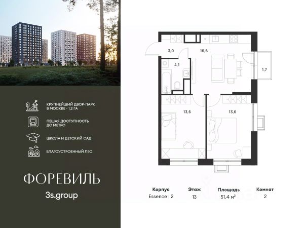 Продаётся 2-к квартира 41.8 кв.м. на 3-м этаже 22 этажного дома, корпус 2 - Резиденция "Сочи" . Без отделки. Легендарный квартал "Новая звезда" продолжается II очередью, которая спроектирована как мультифункциональный кластер. ЖК "Новая Звезда" расположен на территории Новой Москвы, в 10 мин. от м. Теплый стан и в 9 мин. пешком от строящейся станции метро "Бачуринская". Дизайн квартала спроектирован так, чтобы создать 2 города — Гостиный двор и комплекс жилых резиденций. Гостиный двор это стилобат, в котором разместятся рестораны, магазины, спортивные секции, детские кружки. Это место для активной городской жизни прямо в вашем квартале. Гостиный двор, безусловно, является уникальным форматом организации общественной жизни, предлагая жителям квартала весь необходимый спектр услуг в шаговой доступности от дома.. Жителям II очереди квартала "Новая звезда" будут доступны все инфраструктурные преимущества единого квартала: - образовательный кластер с уже построенной инновационной школой нового поколения; - спортивная инфраструктура; - торговые площади с услугами на первых этажах жилых домов.Прямая продажа от застройщика ООО СЗ "ГСД".