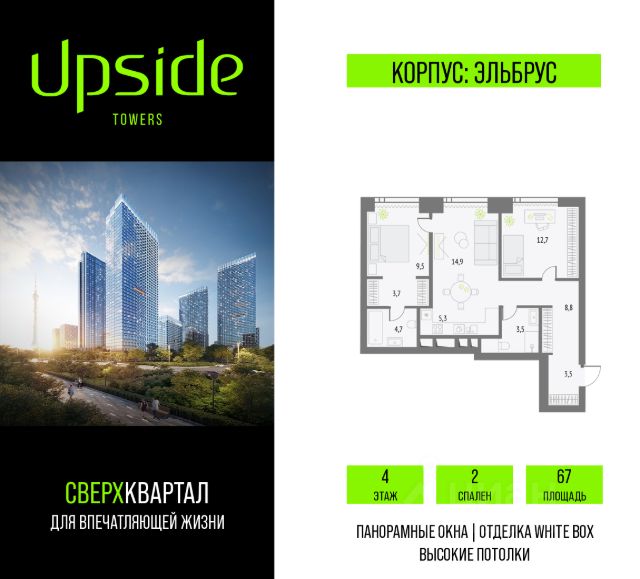 Двуспальная квартира с камином, просторной кухней-гостиной, двумя изолированными спальнями и двумя санузлами. Окна выходят на ландшафтный двор-парк. "Достижение" - единственный дом с торжественной архитектурой в окружении бескрайних парков на любой вкус: парк "Дубовая роща", обновленный классический парк "Останкино", самый известный парк России ВДНХ и крупнейший в Европе ботанический сад. Дом находится в непосредственной близости от центра города: до Садового кольца на автомобиле - 15 минут, 700 м до станции метро "Бутырская", а от нее всего 3 станции на метро - и вы на Цветном бульваре. Архитектура проекта - современное прочтение торжественного и изящного стиля ар-деко, который, как и сталинский ампир, сформировался в результате развития идей чикагской школы. В доме 6 секций, 115 вариантов продуманных планировочных решений - от уютных студий до просторных пентхаусов с дровяным камином. В каждой квартире предусмотрен полный комплекс систем комфорта: принудительная центральная вентиляция с фильтрацией воздуха, очистка воды до уровня питьевой, круглогодичное горячее водоснабжение, быстрые бесшумные лифты, которые идут прямо в паркинг, продуманная подготовка под кондиционирование и другие технологические решения. В доме "Достижение" общественные пространства и квартира тоже гармонично дополняют друг друга, как части единого целого. Здесь есть инфраструктурный центр Clubhouse только для жителей, открывающий возможности для общения и детского развития: клубная гостиная жителей по стандарту Friend`s Lab и детская игровая комната 250 кв.м. в концепции Kid`s Lab. На площади 1,7 гектара создан живописный парк с террасным склоном, в котором растут луговые травы, кустарники и деревья. Пространство ландшафтного парка разделено на зоны для активного и спокойного отдыха с зелёными уголками для любителей тишины. Для спокойного отдыха: тихие места с беседками и шезлонгами, клубная гостиная в концепции Friend`s Lab с открытой террасой и гамаками, зона для барбекю, смотровая галерея, уютный пруд, а также пять пеших маршрутов для променада. Для активного отдыха: универсальная многофункциональная спортивная площадка, отдельная зона для занятий workout и бесплатный фитнес-зал только для жителей по стандарту Fit Lab. В центральной части парка расположен амфитеатр со сценой для представлений и проведения мероприятий. Для гармоничного развития маленьких жителей - пространства по стандарту Kid`s Lab для гармоничного развития детей всех возрастов: детская площадка, игровая комната, рельефная площадка для общения со сверстниками, где можно заниматься паркуром, танцевать и играть в настольный теннис.