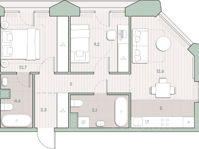 О квартире Продаётся 2-комнатная квартира общей площадью 55 кв.м. с отделкой white box. Квартира расположена на 23 этаже корпуса 5.4 в жилом комплексе бизнес-класса "Среда на Лобачевского" в пешей доступности от метро "Аминьевская". О жилом комплексе "Среда на Лобачевского" полностью соответствует критериям современного жилого пространства. Взяв за основу рациональный подход, мы гармонично соединили дизайн, актуальные тренды и функциональность. Продуманный современный экстерьер и функциональные планировки внутри, приватные пространства и разнообразные досуговые зоны для каждого члена семьи — все это "Среда на Лобачевского". Инфраструктура Район отлично развит и наполнен жизнью, здесь уже есть вся необходимая инфраструктура — детские сады, школы, медучреждения, торговые центры, благоустроены парки для прогулок и отдыха, удобен и легкодоступен городской транспорт. Рядом расположены учебные корпуса крупных университетов — МГУ, МГИМО и РАНХиГС. Школы и детские сады в районе занимают высокие позиции в городских рейтингах, поэтому вам не придется беспокоиться о качестве образования детей. Как и об отдыхе: поблизости расположены живописные пруды, реки и парки. Это Парк Олимпийской деревни, Парк имени 50-летия Октября, Мещерский парк и Очаковские пруды. Теперь поставить галочки в еженедельном чек-листе "спорт-прогулки-встречи с друзьями" можно, не покидая любимый район. Особенности Особое внимание в проекте уделяется созданию функциональных пространств не только внутри дома, но и за его пределами. В ландшафтном парке "Среды на Лобачевского" расположены крытые зоны для спокойного времяпровождения, места для активного отдыха и спорта, коворкинг, соседский комьюнити-центр, водные объекты. —Ландшафтный парк во дворе. —Водный сад с зонами отдыха. —Зоны коворкинга. —Дизайнерские гранд-лобби. —Бесключевой доступ. —Подземный паркинг.