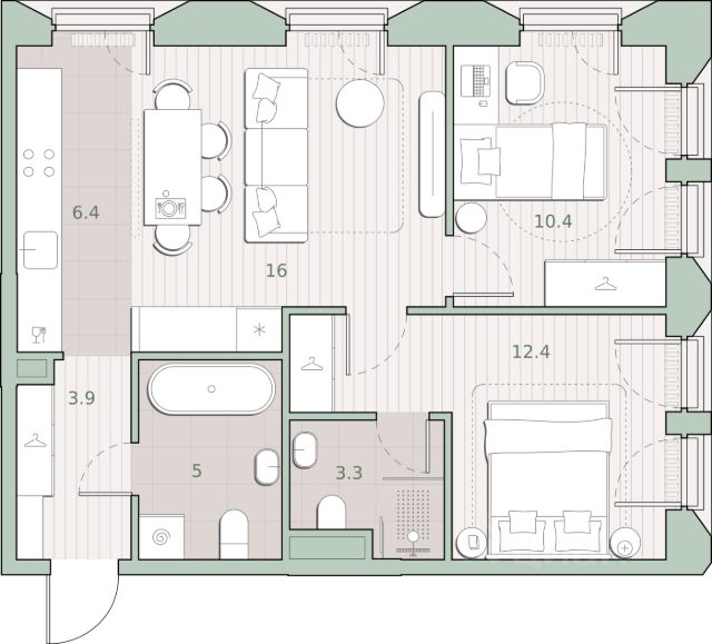 О квартире Продаётся 2-комнатная квартира общей площадью 57.4 кв.м. с отделкой white box. Квартира расположена на 3 этаже корпуса 5.2 в жилом комплексе бизнес-класса "Среда на Лобачевского" в пешей доступности от метро "Аминьевская". О жилом комплексе "Среда на Лобачевского" полностью соответствует критериям современного жилого пространства. Взяв за основу рациональный подход, мы гармонично соединили дизайн, актуальные тренды и функциональность. Продуманный современный экстерьер и функциональные планировки внутри, приватные пространства и разнообразные досуговые зоны для каждого члена семьи — все это "Среда на Лобачевского". Инфраструктура Район отлично развит и наполнен жизнью, здесь уже есть вся необходимая инфраструктура — детские сады, школы, медучреждения, торговые центры, благоустроены парки для прогулок и отдыха, удобен и легкодоступен городской транспорт. Рядом расположены учебные корпуса крупных университетов — МГУ, МГИМО и РАНХиГС. Школы и детские сады в районе занимают высокие позиции в городских рейтингах, поэтому вам не придется беспокоиться о качестве образования детей. Как и об отдыхе: поблизости расположены живописные пруды, реки и парки. Это Парк Олимпийской деревни, Парк имени 50-летия Октября, Мещерский парк и Очаковские пруды. Теперь поставить галочки в еженедельном чек-листе "спорт-прогулки-встречи с друзьями" можно, не покидая любимый район. Особенности Особое внимание в проекте уделяется созданию функциональных пространств не только внутри дома, но и за его пределами. В ландшафтном парке "Среды на Лобачевского" расположены крытые зоны для спокойного времяпровождения, места для активного отдыха и спорта, коворкинг, соседский комьюнити-центр, водные объекты. —Ландшафтный парк во дворе. —Водный сад с зонами отдыха. —Зоны коворкинга. —Дизайнерские гранд-лобби. —Бесключевой доступ. —Подземный паркинг. Продам 2-комнатную квартиру от застройщика рядом с метро Озерная.