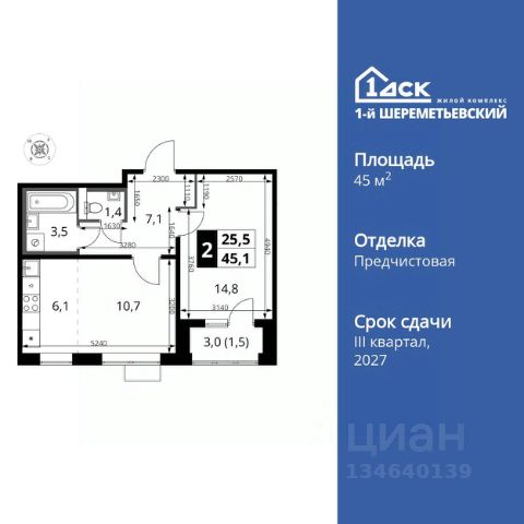 Продается двухкомнатная квартирав жилом комплексе комфорт класса "Химки Тайм" площадью 48.56 кв.м на 9 этаже 20 этажного дома. Квартира с полной отделкой, окна выходят во двор и на улицу. Прекрасный выбор для первой квартиры или инвестиций. Комфортные квартиры по комфортной цене! • Скидки на квартиры до 17% (стоимость квартиры в карточке указана с учетом скидки). • Семейная ипотека без дополнительных комиссий • IT ипотека без дополнительных комиссий • Квартиры "под ключ", сдаются с чистовой отделкой, в светлых и темных тонах на ваш выбор. • Точечная застройка с готовым ремонтом: выбирайте дом, где слышно птиц, а не стройку. Живите ДОМА, а не на стройплощадке. • Бесплатный наземный паркинг грамотное планирование потоков машин и пешеходов позволяют сделать дом удобным для всех. Не нужно переплачивать за подземный гараж. • Прекрасный выбор для первой квартиры или инвестиций. В 20252027 недалеко будет запущен Индустриальный парк "Молжаниново" технологичный объект, который станет еще одним катализатором развития района, предоставит рабочие места высококвалифицированным специалистам и подстегнёт спрос на покупку и аренду квартир. Успейте вложиться по выгодной цене. До центра Москвы на учебу, работу и по любому поводу — это быстро! • 5 мин пешком до скоростной линии МЦД-3 "Молжаниново". • От 30 мин на автобусе или маршрутке до ст.м. "Сходненская", "Речной вокзал". Остановка общественного транспорта "Филино" около ЖК. • На автомобиле удобный выезд на Ленинградское шоссе: до центра Москвы — 40 минут, до международного аэропорта Шереметьево — 20 минут. В состав чистовой отделки входит всё, что нужно для комфорта. Вкладывайте в себя и в детей, а не в ремонт! • Выравнивание полов, стен и потолков • Покрытие полов ламинатом • Поклейка обоев • Монтаж натяжных потолков с установкой светильников • Установка межкомнатных дверей • Установка радиаторов отопления • Выкладывание плиточного "фартука" на кухне • Установка водопроводных и канализационных труб в "мокрой зоне" на кухне • Укладывание плитки в ванной комнате • Установка сантехники • Установка счетчиков • Разводка электросети • Монтаж розеток, выключателей Архитектура на многие десятилетия! • Дома строятся по монолитной технологии с вентилируемыми фасадами. В квартирах будет комфортный микроклимат в любой сезон, а корпуса сохранят достойный внешний вид в течение долгого времени. • В каждом корпусе один подъезд и 3 лифта это не человейник. • В каждом подъезде есть отдельная комната для хранения спортивного оборудования. Инфраструктура на территории качественный дом с понятной "начинкой". • На первых этажах расположатся магазины, салоны красоты и кафе • Внутри ЖК будет муниципальный детский сад • 2 спортивные площадки • 2 площадки для отдыха взрослого населения • 4 детские игровые площадки Собственный паркинг ваша машина около вашего дома. • В ЖК своя бесплатная наземная автостоянка на 210 машиномест Окружение выбирайте ЖК,