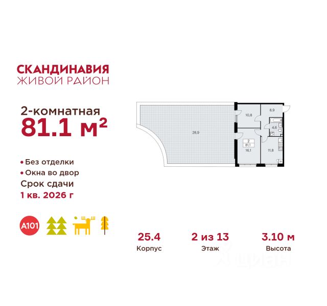 В жилом комплексе, расположенном по соседству с ландшафтным парком "Южное Бутово", продается 2-комнатная квартира площадью 62.10 кв. м. без отделки. Квартира расположена на 2 этаже 1 корпуса в жилом квартале комфорт-класса "Новые Смыслы" (ГК Unikey/Юникей). Доступная и удобная локация: - 10 минут ходьбы до станции метро "Потапово". - 25 минут ходьбы до станции метро "Бунинская аллея". - 15 минут на авто до Калужского шоссе. - 20 минут на авто до МКАД. - 30 минут на машине до аэропортов "Внуково" и "Остафьево". Продуманный архитектурный проект: - Разноуровневые секции с эстетичные башнями и контрастными цветовыми сочетаниями, напоминающими башни в Сити. - Сказочные виды из окон на современный район столицы. - Авторские планировки с потолками в 3 метра, просторными кухнями-гостиными и мастер-спальнями. - Комфортные бесплатные общественные пространства. - Подземный паркинг с прямым доступом на лифте. - Настоящий лес с живописными пейзажами и прудом прямо во дворе. Расположение Комплекс "Новые Смыслы" расположится в благоприятном районе Новой Москвы - Коммунарка. Зеленое окружение, богатая инфраструктура развивающегося района - все это сформирует особое пространство для комфортной жизни, наполненной смыслом. 10 минут на велосипеде - и вы в ландшафтном парке "Южное Бутово" или сквере у Потаповских прудов. Чуть дальше расположен Бутовский лесопарк. В окружении "Новых Смыслов" вы найдете все необходимые социальные объекты. В двух шагах от дома находится 5 школ, более десятка детских садов, секции для занятий малышей и подростков, частные клиники, супермаркеты, рестораны, студии красоты и фитнес-центры. За 12 минут на авто вы доберетесь до ледовой арены, комплекса "Спорт Станция" и спа-центра "Termoland". Внутренняя инфраструктура Для жителей "Новых Смыслов" будут созданы бесплатные общественные пространства: - Деловая гостиная с эстетичным коворкингом и переговорными. - Гостиная для души и тела, включающая фитнес-зону с тренажерами и пространства для стретчинга, йоги и медитаций. - Гостиная детства, где дети будут играть и развиваться под присмотром тьютора. - Кино-гостиная - кинотеатр на крыше одного из домов, предлагающий разнообразную программу. - Прачечная, работающая только для жильцов. Вместе с корпусами комплекса на территории запланировано строительство детского сада. На первых этажах корпусов откроются кофейни, пекарни, сервисы быта и пункты доставки. Благоустройство Чтобы отдохнуть от суеты города, достаточно выйти во двор: здесь раскинулся настоящий лес с живописными пейзажами. В тени деревьев жителей ждут пруд с мостиком и беседкой на берегу, тихие прогулочные аллеи, спортивная площадка и зоны для занятий йогой и бадминтоном на свежем воздухе. Юных жителей порадуют современные детские площадки, жукарий и специальное пространство для подвижных игр. Безопасность на территории гарантирована: двор огорожен от машин и оснащен камерами видеонаблюдения.