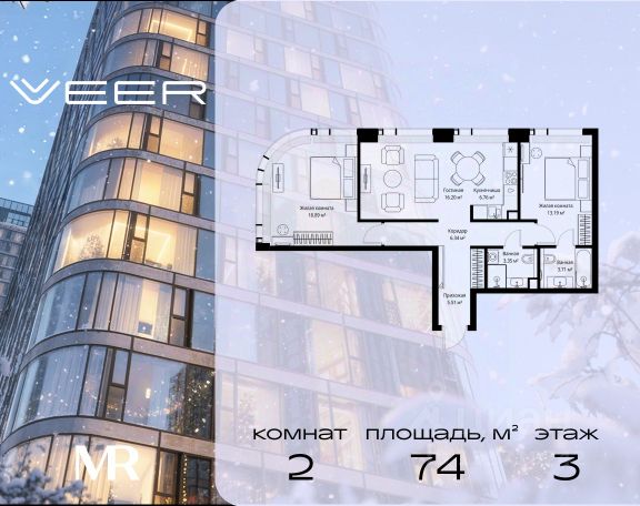 Старт продаж новой очереди! Продаётся 2-комнатная квартира общей площадью 74.07 м² без отделки в ЖК VEER на 6-м этаже 25 этажного дома. VEER.2 — вторая очередь футуристичного квартала бизнес-класса VEER. Это новая экосистема в престижном Западном округе Москвы, поражающая масштабностью внутренней инфраструктуры. ЖК находится всего в 5 минутах от Кутузовского проспекта и в 15 минутах от Сколково. Ансамбль из четырех стеклянных башен с доминантой в 237 метров разработан по принципу современного урбанизма и выражен в лаконичных объемах — параллелепипедах со сглаженными углами, которые придают зданиям утонченный вид. Расположение и транспортная доступность: • Образовательный комплекс в составе топовой школы, состоящий из двух зданий: основное на 1500 школьных и 450 дошкольных мест, отдельное здание детского сада на 300 мест. • Парк "Долина реки Сетунь" площадью более 700 гектаров • Рядом МГУ, МГИМО, РАНХиГС и Академия ФСБ • 15 минут по Кутузовскому проспекту до ужина в центре с видом на Москву-реку • 18 минут пешком до м. "Давыдково" • Открытие новых станций метро в шаговой доступности в будущем Инфраструктура: Двор в VEER.2 — это ассиметричные холмы, каменные "лабиринты", зеленые ковры и хвойные островки с единой живой экосистемой. Здесь есть все: • Павильон умиротворения Место отдыха под навесом в спокойной части двора, окруженное деревьями. • Активная тропа Тактильная дорога из камней разного диаметра для расслабляющих прогулок. • Бизнес-гарден Оборудованное пространство для работы на свежем воздухе со столом и встроенными розетками. • Детская площадка Двухуровневая площадка "Ботаника" с песочницей, переговорной трубой и горкой "Дружба". Компания MR предлагает своим клиентам специальные условия приобретения квартир в рамках программ ипотечного кредитования от банков-партнеров.