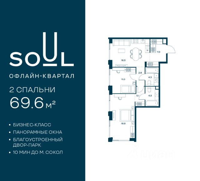Цены указаны с условием 100% оплаты и стандартной ипотеки. Прямая продажа от застройщика! Продается 2-к. квартира номер 420 общей площадью 75.1 кв.м. на 8-м этаже 18 этажного дома, Корпус 8. Без отделки. Проект бизнес-класса SOUL от девелопера FORMA. До метро Сокол 10 мин пешком. Архитектура от британского бюро SimpsonHaugh. Благоустройство дворов — Gillespies и GAFA. Территория состоит из культурного парка и приватных дворов. Озеленение в эстетике лесного оазиса. Насыщенное благоустройство: прогулочные тропинки, релакс-зоны, пряный и сенсорный сады, развивающие детские площадки и воркауты. В центре проекта объект культурного наследия — общественное пространство Изофабрика, построенная в 30-х годах по проекту архитектора Георгия Гольца. Здесь будут располагаться мастерские для взрослых и детей, выставочные залы, коворкинги, образовательный центр, рестораны и кафе. Квартиры с панорамными окнами, мастер-спальнями, гардеробными, классическими балконами и лоджиями, видовыми террасами. Высота потолков от 2,9 до 3,5 м. В проекте 2 детских сада на 100 и 200 малышей. Клубная гостиная, фитнес-рум, детская игровая комната, дизайнерские лобби, подземный паркинг и келлеры. Продам 2-комнатную квартиру от застройщика рядом с метро Сокол.