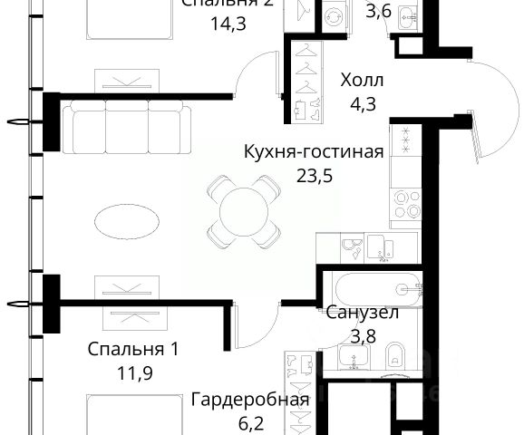 В каждом здании комбинируется максимальное количество и разнообразие форматов квартир: от видовых квартир с зелеными террасами и лоджиями до квартир малого формата.