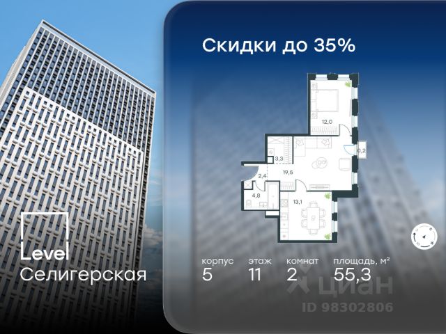 Прямая продажа от застройщика. Продаётся 2-комнатная квартира общей площадью 58.76 м² с предчистовой отделкой в ЖК "Селигер Сити" на 26-м этаже башни Лисицкого. Корпуса четвертой очереди ЖК "Селигер сити" названы в честь трех великих представителей науки и архитектуры, новаторское видение которых — слишком смелое для своего времени — нашло воплощение в уникальных домах жилого комплекса. Вдохновленные авангардными идеями знаменитого советского архитектора Эля Лисицкого, архитекторы создали яркий центр притяжения всего района, задающий новый стандарт жизни в современном мегаполисе — две высокие "Башни Лисицкого" с современной интерпретацией горизонтального небоскреба. Преимущества проекта: - 2 минуты пешком от метро "Селигерская" - Архитектурное решение от голландского бюро MLA + - Одна из самых больших придомовых территорий в Москве - Огороженная охраняемая территория, круглосуточное видеонаблюдение - Европейский подход к благоустройству от бюро Wowhaus: появится парадный бульвар, аллея с фонтаном и арт-объектом, что дополнит уже сформированное благоустройство: детские площадки для разных возрастов, площадки для воркаута, дорожки для бега и пеших прогулок, места для отдыха - Два детских сада, школа начальных классов и центр доп.образования - Искусственный пруд на территории комплекса с благоустроенной набережной и мостом - Продуманная концепция инфраструктуры: уютные кафе и рестораны, супермаркет, магазин фермерских продуктов, бытовые службы, салон красоты, детские сады - Ультрасовременные инженерные решения - Подземный паркинг с зарядными станциями для электромобилей, постами подкачки шин и келлерами - Лобби по индивидуальному дизайн проекту от европейского бюро Вlank Architects: лаунж-зоны, ресепшен, колясочная, помещение для мытья лап животным после прогулки - Надежный девелопер с опытом премиальных проектов MR Расположение комплекса: - 2 минуты от станции метро "Селигерская" - 7 минут на машине до станции метро "Окружная" - Предусмотрен удобный выезд в сторону ТТК (всего 9 км или 15 минут без пробок) - МКАД в 10 минутах на машине Компания MR предлагает своим клиентам специальные условия приобретения квартир в рамках программ ипотечного кредитования от банков-партнеров.