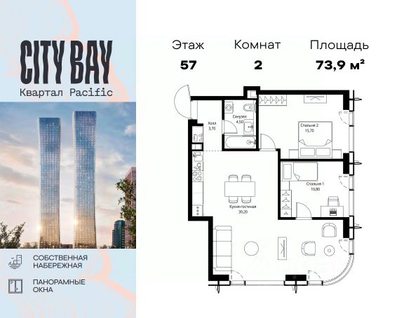Прямая продажа от застройщика. Продаётся 2-комнатная квартира общей площадью 67.75 м² с предчистовой отделкой в ЖК City Вау, квартале North, на 12-м этаже 27 этажного дома. Концепция жилого комплекса City Вау - настоящий город в городе с отлично развитой инфраструктурой и собственной благоустроенной набережной. На территории жилого комплекса расположено пять кварталов - Atlantic, Pacific, Indian, North, Cliff. Жилой квартал City Вау отличается оригинальной концепцией и выделяется среди других проектов такими характеристиками как: - Архитектура, - Виды из окон, - Природное окружение, вызывая гордость у жителей и восхищение у прохожих. Вся жизнь района Покровское-Стрешнево строится вокруг водных объектов: - Пойма реки Сходни с уникальной экосистемой, - Речка Химка и Химкинское водохранилище, - Москва-река, - Канал имени Москвы. Кругом вода, и местные с удовольствием этим пользуются. А сразу за рекой - центр водного спорта в Строгино с вейк-парком и яхт-клубами. Помимо воды, здесь очень много зелени: - Рядом Сходненский ковш памятник природы, естественный амфитеатр глубиной 40 метров; - Парк при усадьбе Братцево с фруктовым садом; - Дубовая роща "Маяк", - Алешкинский лес; - Лесопарк Покровское-Стрешнево с пляжами и бобрами. Главные транспортные артерии района: - Волоколамское шоссе, - Таганско-Краснопресненская линия метро и МЦД-2. Всего за 20 минут можно добраться до центра на машине или метро, а МЦД связывает ЖК City Вау с северными, восточными и юго-восточными районами. Компания MR предлагает своим клиентам специальные условия приобретения квартир в рамках программ ипотечного кредитования от банков-партнеров.