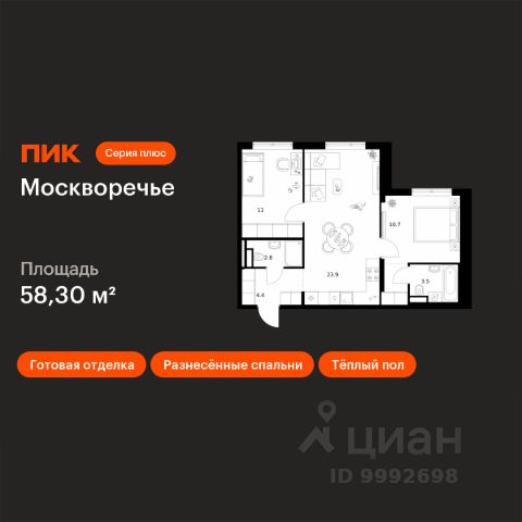 В районе Москворечье-Сабурово продается 2-комнатная квартира площадью 41.96 м². Она расположена на 7 этаже в 262 корпусе нового жилого квартала Лайф Варшавская. Площадь комнат: гостиная — 12,21 м² спальня — 11,59 м² кухня — 8,35 м² ванная — 4,69 м² В Лайф Варшавская мы создали идеальные условия для жизни молодых людей и семей с детьми, тинейджеров и спортсменов, домохозяек и бизнесменов. Жилой квартал Лайф Варшавская удачно расположен: 5 минут до станции "Варшавская" 10 минут до станции "Каширская" 18-25 минут до парка-усадьбы "Коломенское", Битцевского леса и музея-заповедника "Царицыно" Богатая инфраструктура — это визитная карточка проекта. На территории работают детский сад на 160 мест и школа на 900 мест с IT-полигоном и мультифункциональным спортивным стадионом. В квартале разместились пешеходный бульвар, игровой плейхаб "Змейка", спортивный кластер с полями для футбола и волейбола, площадка для выгула животных. На первых этажах жилых домов открыты магазины, кафе и рестораны, салоны красоты, арт-галереи, сервисы бытовых услуг, медицинские центры. Концепция жилого квартала создана ведущими архитектурными бюро. Структуры малоэтажных кварталов дополняются высотными башнями-доминантами. Такой тип застройки позволил сформировать освещенную приватную территорию. Продается 2-комнатная квартира от застройщика в районе Москворечье-Сабурово в Москве.