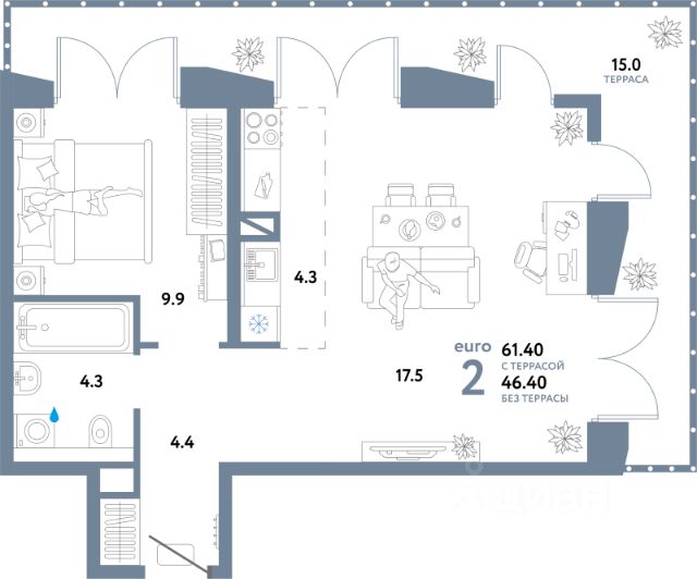 Цена указана с учётом скидки при 100%-й оплате, несубсидированной ипотеке, рассрочке (кроме программы "Рассрочка 0%"). В жилом квартале, расположенном на границе с природным заказником "Долина реки Очаковки", продаётся 2-комнатная квартира площадью 36.40 кв.м без отделки. Квартира расположена на 39 этаже 45-этажного корпуса 4 в жилом комплексе бизнес-класса Level Мичуринский (компания Level Group/Левел групп). Отличная транспортная доступность - 10 мин. пешком до станции метро "Мичуринский проспект" - 15 мин. пешком до станции метро "Аминьевская" - 7 мин. на авто до МКАД - 10 мин. на авто до ТТК - 15 мин. на авто до Москва-Сити Продуманный архитектурный проект - Выразительная архитектура от известных бюро: корпуса 1-6 - СПИЧ, корпуса 7-13 - Borisov Architects; - Из окон открываются живописные виды на парки, Москва-Сити и МГУ; - Высокие потолки до 6,35 м; - Стильные лобби с окнами в пол и высокими потолками до 4,7 м; - С каждого этажа дома на лифте можно спуститься в подземный отапливаемый паркинг. Расположение Level Мичуринский строится в одном из самых зеленых районов Москвы - Очаково-Матвеевское. Этот уголок столицы идеален для поддержания здорового образа жизни. В шаговой доступности от проекта находятся заказник "Долина реки Очаковки" - 1 мин. пешком и Очаковский парк - 7 мин. пешком. На велосипеде можно добраться до таких парков, как "Событие", парк Олимпийской деревни, парк 50-летия Октября и парк Школьников. В 15-минутной доступности на авто расположено более 30 детских садов (из них 14 в пешей доступности), 32 школы (из них 13 в пешей доступности) и 14 вузов. В ближайшем окружении работает более 25 медицинских учреждений, 11 спортивных клубов и 22 продуктовых супермаркета. Внутренняя инфраструктура На территории жилого комплекса строится три детских сада и школа. На первых этажах домов откроется супермаркет, фитнес-центр, ресторан, кафе и другие сервисы. Подземные этажи займут паркинги: трехуровневые в этапах 1 и 2, одноуровневый в этапах 3 и 4. Преимущества проекта - 4,5 га благоустроенной территории с видовым мостом, уличным кинотеатром, зонами для тихого отдыха, работы, воркаута, площадки для петанка, футбола, настольного тенниса и пляжного волейбола; - Дизайнерские лобби с панорамным видом на двор, мойками для лап животных и комфортными зонами ожидания. - Безопасность жителей: круглосуточное видеонаблюдение всех зон общего пользования (лобби, лифты, паркинги, детские площадки), система контроля доступа, управление видеодомофоном через мобильное приложение, единый ключ доступа на территорию жилого комплекса. - Технологии и комфорт: высокоскоростной Wi-Fi в лобби и на придомовой территории, автоматическая система контроля и учета ресурсов, абонентская связь с консьержем, распознавание номеров автомобилей при въезде/выезде в/из паркинга. Продается 2-комнатная квартира от застройщика на улице Озерная в Москве.