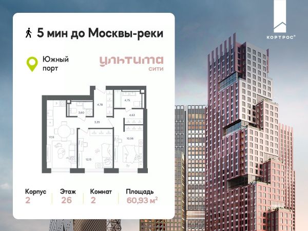 В динамично развивающемся районе Москвы, всего в 300 метрах от метро и в пешей близости от нового городского порта с протяженной набережной 13 км, свободной от автомобилей, продается 2-комнатная квартира площадью 49.40 м². без отделки. Квартира находится в корпусе жилого комплекса бизнес-класса "Адмирал", расположенного по адресу г. Москва, ул. Шоссейная, 4Д. (Застройщик - "Галс Девелопмент"). Новый амбициозный проект "Адмирал" станет частью одного из самых перспективных районов будущего - "Сити-2". В пешей доступности от современных башен Вас ждут живописные Люблинские пруды, 2 усадьбы с уникальной историей и уютный парк "Печатники" у Перервинского плёса. Район имеет отличную транспортную доступность: • 300 метров до станции метро "Печатники"; • Удобная пересадка на БКЛ и станцию МЦД-2; • 10 минут на машине до ТТК; • 15 минут до Садового кольца. Архитектура корпусов отличается динамичностью облика благодаря переменной этажности: высокие башни сочетаются с домами средней этажности. Изящным украшением становятся арочные витражи. Интеллигентный и современный стиль "Адмирала" продолжается в гранд-лобби: пастельные оттенки интерьера и фактурные элементы декора создают атмосферу безмятежного отдыха, особое ощущение простора дарят высокие потолки до 4 м и витражные окна. В домах предусмотрено от трех до шести скоростных лифтов, каждый из них спускается на любой этаж подземного паркинга и обладает удобными сенсорными панелями управления и низким уровнем шума. Благоустроенный двор площадью 5000 кв.м. украсят десятки видов гипоаллергенных растений. Здесь можно совершить приятный променад, по пути заглядывая за свежезаваренным кофе, уединиться за ноутбуком в комфортном коворкинге, занять ребенка играми в двухъярусном плейхабе или помедитировать на специальной площадке для йоги. Мягкий свет декоративных фонарей подчеркнет живописность местности, а чувство безопасности гарантируют круглосуточные системы видеонаблюдения. Дополнительные преимущества: • Высокие потолки от 2,9 до 3,25 м; • Бизнес-центр, школа и детский сад прямо на территории дома; • Подземный двухуровневый паркинг на 1955 машино-мест; • Кладовые помещения в тёплом контуре на 2м этаже; • Стрит-ритейл на первых этажах.