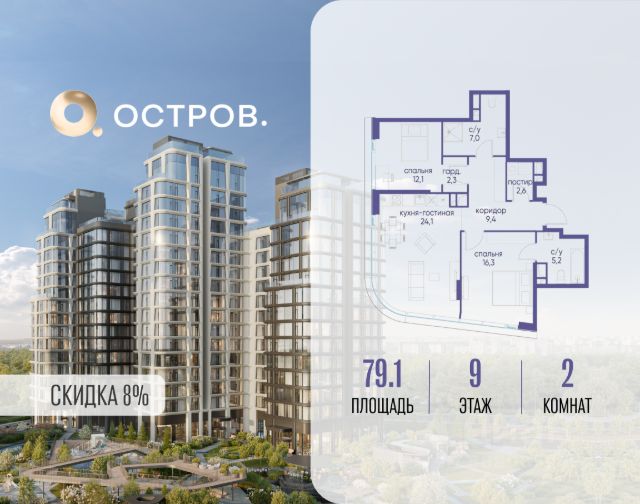 У вас есть уникальная возможность приобрести идеальную квартиру! Комфортный 5 этаж, ЖК бизнес-класса, потолки 3,1 м. и 7 панорамных арочных окон.
