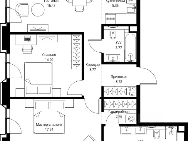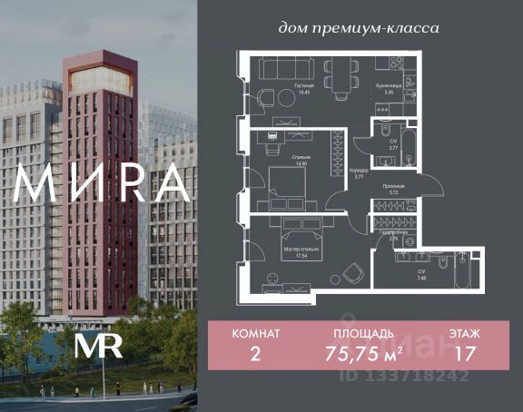 Продаётся 2-комнатная квартира общей площадью 66.54 м² без отделки в доме премиум-класса МИRА на 21-м этаже 23 этажного дома. Квартира расположена в корпусе 2.