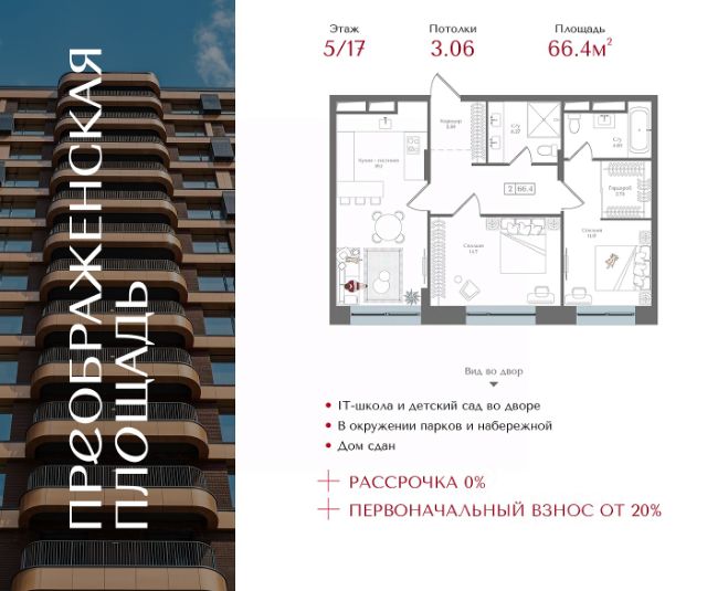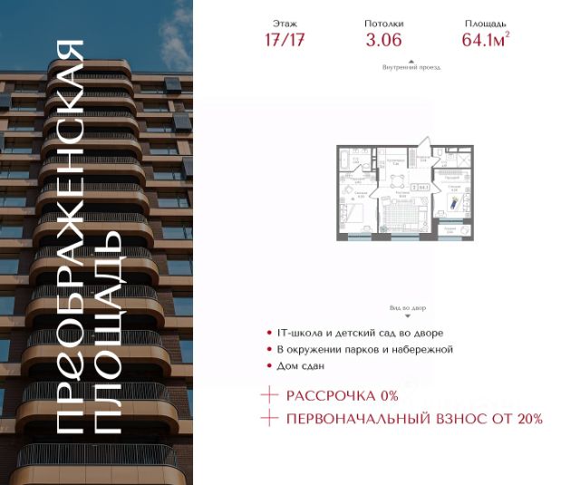11133 Предлагается к продаже уникальная двухкомнатная квартира с панорамной лоджией в жилом комплексе Бизнес класса - Вдохновение в пешей доступности от двух станций метро: до Бульвара Рокоссовского - 20 минут, до Преображенской площади - 24 минуты.