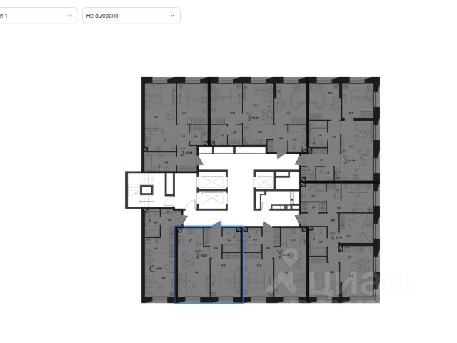 В бетоне, 12 этаж, 48,5 квадратов, свободная планировка.