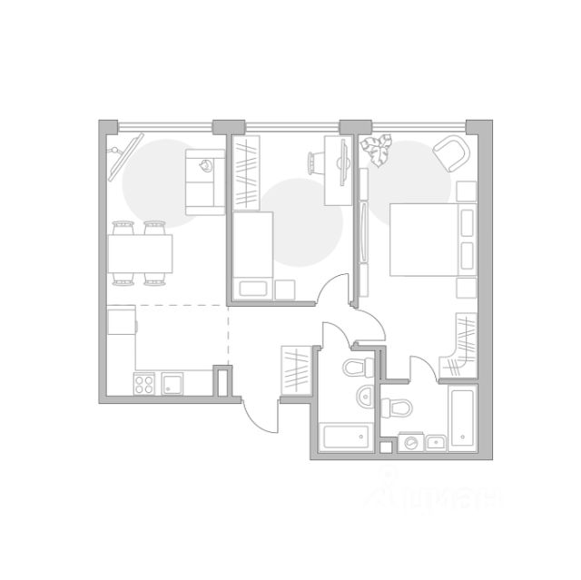 Продаётся 2-комнатная квартира 59, площадью 62,33 м², на 7 этаже в ЖК "Мнёвники от Гранель" корпус 1. Стоимость — от 32906393 руб. Квартира без отделки, планировка угловая, окна во двор.