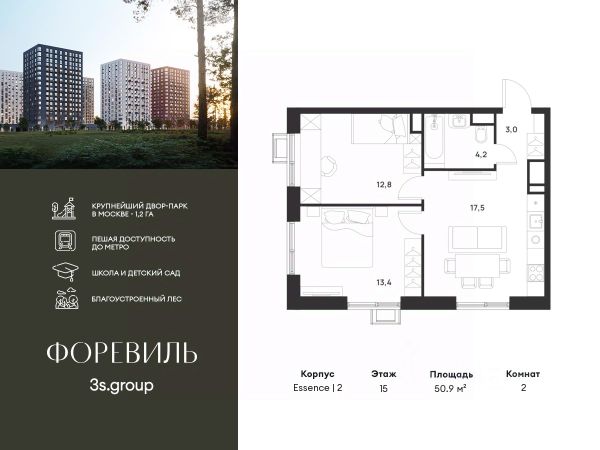 Предчистовая отделка в подарок! Пешая доступность от метро и московская прописка! Продается уютная 2-комн. квартира площадью 64,3 кв.м на 14 этаже 17 этажного жилого комплекса бизнес-класса Foreville от 3S Group. Общая площадь: 64,3 кв.м., жилая: 39,8 кв.м., площадь кухни-гостиной: 22,3 кв.м., высота потолков: 2,72 м., окна выходят во двор и на улицу. Квартира предлагается без отделки, что идеально подходит для воплощения собственного дизайнерского решения. Также доступна опция предчистовой отделки, стоимость которой включается в общую цену квартиры. О проекте: Пространство Комплекс располагает крупнейшим приватным двор-парком в Новой Москве площадью 1,2 Га, предлагая жителям огромное пространство для отдыха, спорта и игр на свежем воздухе. Природный ландшафт Внутренний лесопарк с более чем 183 взрослыми деревьями и 10 320 цветущими кустарниками создает уникальную природную атмосферу для каждого времени года. Игровые и спортивные зоны Обширные площадки с безопасным покрытием, специализированные зоны для детей разных возрастных групп и взрослых, включая воркаут и настольный теннис, способствуют активному и здоровому образу жизни. Экологичность и долговечность Использование натуральных материалов, таких как лиственница, и крупноформатной бетонной плитки для покрытия, подчеркивает стремление проекта к экологичности и устойчивости. Безопасность и уединение Внутренний двор без машин обеспечивает безопасность для детей и спокойствие для взрослых. Территория огорожена и находится под круглосуточным видеонаблюдением. Сохранение времени Благодаря превосходной транспортной доступности и близости к новой станции метро Корниловская, Foreville позволяет жителям экономить время для семьи и отдыха на природе, минимизируя необходимость длительных поездок. Foreville не просто жилье, а целая экосистема для комфортной и гармоничной жизни на свежем воздухе, совмещая преимущества городской инфраструктуры и непосредственную близость к природе.