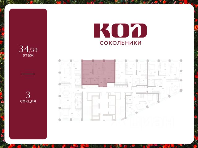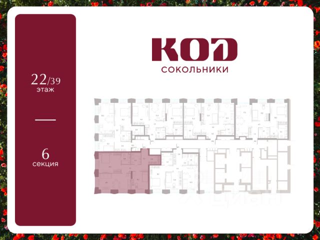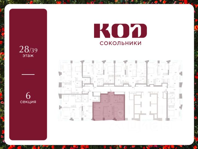 В семейном жилом квартале, расположенном в окружении более 500 га леса и объектов исторического наследия, продается 2-комнатная квартира площадью 55.2 кв. м без отделки. Квартира расположена на 17 этаже 39-этажного корпуса 2.2 жилого квартала бизнес-класса КОД Сокольники от девелопера Новая Эра. Отличная транспортная доступность - 3 мин. пешком до станции МЦД-3 "Митьково"; - 7 мин. пешком до станции метро "Сокольники"; - Удобный выезд на Русаковскую улицу; - 5 мин. на авто до ТТК; - 15 мин. на авто до Садового кольца. Продуманный архитектурный проект - Выразительная архитектура, созданная бюро "Остоженка"; - 70% квартир в квартале - видовые, что позволяет ежедневно наслаждаться панорамами на парк Сокольники, Останкинскую телебашню, исторический центр и Алексеевский монастырь; - 30% квартир - угловые. Увеличенные оконные проемы, панорамное остекление и продуманное расположение комнат усиливают эффект обзорности: гостиные и спальни получают максимум дневного света и живописные виды, которые становятся частью интерьера; - Высокие потолки от 3 метров в типовых планировках; - Дизайнерские лобби от модной студии 211.Studio; - Двухуровневый паркинг с подогреваемой рампой и пологим заездом, подходящим даже для спорткаров; Расположение Семейный жилой квартал КОД Сокольники - это дома бизнес-класса в престижном районе Сокольники. Район отличает хорошая транспортная доступность: несколько минут пешком до станции метро "Сокольники" и платформы МЦД-3 ("Митьково"), регулярные трамвайные и автобусные маршруты, удобный выезд на Русаковскую улицу и Третье транспортное кольцо. До Садового кольца можно доехать за 15 минут. Для пешеходов и велосипедистов в парковой зоне будут оборудованы широкие тротуары и велодорожки, обеспечивая комфортные условия для активного образа жизни. Внутренняя инфраструктура Резидентам будет доступна развитая клубная инфраструктура: собственный фитнес-рум, коворкинг с панорамным видом на парк, игровая комната для детей, пространства для мастер-классов и просторная гостиная, которую можно использовать для отдыха, просмотра кино или проведения мероприятий. На первых этажах жилых домов разместятся объекты стрит-ритейла: кафе, рестораны, магазины и различные сервисы - от аптек и салонов красоты до ателье и барбершопов. Рядом с жилыми корпусами появится деловой квартал с офисами и торговыми площадями на 75 тысяч кв. м, что делает проект привлекательным для тех, кто ценит возможность жить и работать поблизости. Благоустройство Центральным элементом квартала станет благоустроенный двор-парк площадью 3 га с собственным прудом и зелеными зонами для прогулок и отдыха. В границах двора предусмотрены современные игровые и спортивные площадки: мультифункциональная зона воркаута, площадки для волейбола и стритбола, площадки для пилатеса и йоги, скалодром, а также беговые и веломаршруты. В состав проекта войдет образовательный центр, включающий детский сад для 350 малышей, а также школу на 650 учеников.