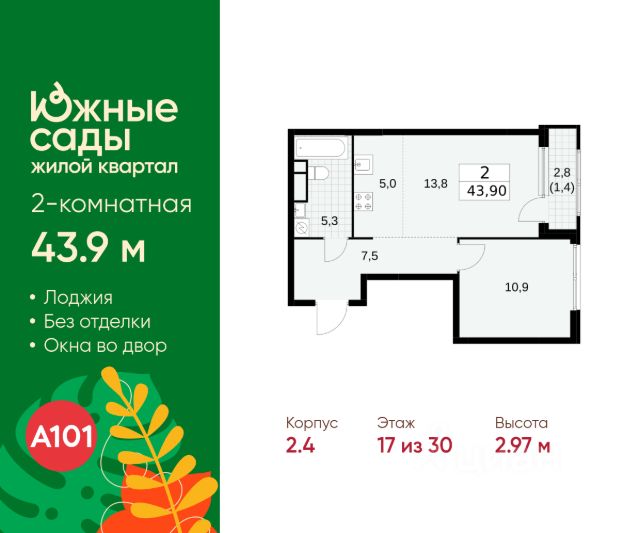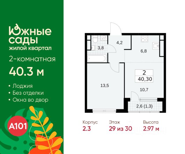 Продается двухкомнатная квартира 536 в новостройке ЖК "Южные Сады" по адресу Москва, ЮЗАО, Южное Бутово, ул. Бартеневская, д. 16. Общая площадь квартиры - 42.10 кв. м., этаж 22 из 22, секция 5. Тип проекта, по которому построен дом - монолит, компания-застройщик - ООО "А101". Стоимость квартиры - 17656740 Р. Срок сдачи - 2 квартал 2027. ПРЕДЛОЖЕНИЯ ОТ ЗАСТРОЙЩИКА В МАРТЕ 2026: Ипотека от 13,9 % для всех! На весь срок. "Семейная ипотека" вернулась. Ставка от 3,5 % на весь срок! Без удорожания! Выгодное ипотечное комбо: Ипотека от 2200 р./мес. и от 6 % после рождения ребёнка! Ипотека для всех "Держи пять!" - ставка 5 % на 2 года! *более подробную информацию по скидкам и акциям уточняйте в отделе продаж "Южные сады" на юго-западе Москвы - это жилой комплекс монолитных домов с авторской архитектурой, холлами в средиземноморском стиле, колясочными, современными лифтами, паркингом и кладовыми. Южную атмосферу в районе создадут: - перголы с вьющимися растениями, живые изгороди, садовые дорожки - цветущие, плодовые и вечнозелёные растения - стилизация под средиземноморский ландшафт - амфитеатр и игровой кластер со скалодромом. За безопасность "отвечают" закрытые дворы без машин с доступом только для жителей дома, видеонаблюдение, вход по магнитным ключам. Рядом ландшафтный парк "Южное Бутово", Черневские пруды: театры, танцплощадка, крытые беседки, детские и спортивные комплексы, пикниковые зоны, пешеходные дорожки, деревянные настилы. На первых этажах домов: супермаркеты, кафе, банки, фитнес, пекарни. В пешей доступности - торговые центры, гипермаркет, ФОК, действующая инфраструктура. Для семей с детьми - кружки, секции, детские клубы,центры развития, языковые школы. Преимущества "Южных садов": - атмосферное "средиземноморское" благоустройство - 3 станции метро: "Бунинская аллея", "Улица Горчакова", "Новомосковская" - в пределах 1,6 км - в окружении - развитая инфраструктура обжитой локации - в пешей доступности - Бутовский лесопарк Продам 2-комнатную квартиру от застройщика в районе Южное Бутово в Москве.