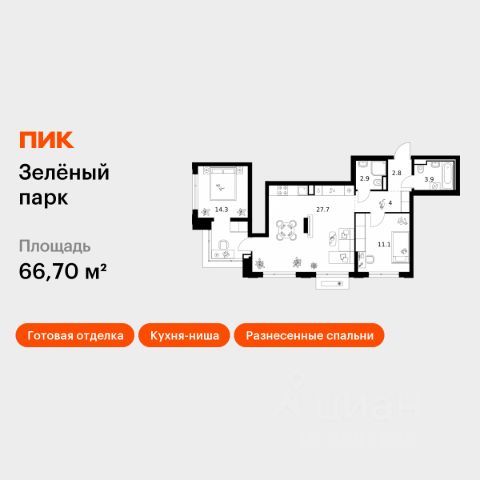 Продаётся 2-комн. квартира площадью 44,6 кв.м на 13 этаже 28 этажного дома (Корпус 5.4, Секция 5) проекта ПИК Зелёный парк. Светлый просторный подъезд на уровне земли, функциональная планировка, большие окна, c отделкой. Большой квартал с оригинальной архитектурой в обжитом районе Зеленограда. От него до станции МЦД-3 "Зеленоград-Крюково" — 20 минут пешком, до Кутузовского шоссе можно доехать на машине за 3 минуты, а до Пятницкого шоссе — за 5 минут. Характер "Зелёного парка" отражён в архитектуре. Квартал состоит из уютных разноэтажных блоков с оригинальными акцентами. Цветовая палитра проекта спокойная и сдержанная: оттенки белого и коричневого сочетаются с пастельным розовым и мятным. В проекте запланированы также два детских сада, две школы и паркинг. На первых этажах откроются магазины, кафе и другие сервисы — чтобы купить кофе и свежий хлеб к завтраку, можно будет просто спуститься на лифте. В уютных дворах-парках появятся места для отдыха, детские площадки, кофейни и зоны отдыха. Рядом — Зеленоградский лес, Парк Победы и Михайловский пруд, где можно гулять и заниматься спортом. У жителей "Зелёного парка" будет возможность получить московскую прописку. Для любителей спорта в 10 минутах пешком от квартала — велодром с BMX-трассой, физкультурно-оздоровительный комплекс Горизонт, а также лыжероллерная трасса длиной около 3 км. Артикул 1031423 (Застройщик АО "СПЕЦИАЛИЗИРОВАННЫЙ ЗАСТРОЙЩИК "ЗЕЛЕНОГРАДСКИЙ") Продается 2-комнатная квартира от застройщика в Зеленограде.