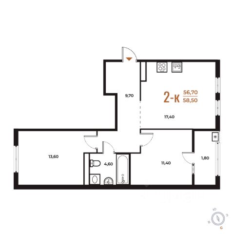 Продаётся 2-комнатная квартира в строящемся доме (Корпус 1), срок сдачи: I-кв. 2026, общей площадью 58.4 кв.м., на 3 этаже. Комплекс отдельно стоящих жилых корпусов с нежилыми помещениями и подземной автостоянкой.
