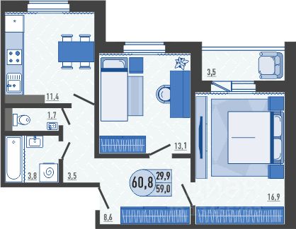 Продаётся 2-комнатная квартира в сданном доме (корпус 1), срок сдачи: IV-кв. 2024, общей площадью 60.6 кв.м., на 7 этаже. Новый жилой комплекс "Зеленый квартал" от застройщика "Орелстрой" расположен по адресу Орловский муниципальный округ, деревня Жилина, улица Генерала Лаврова.