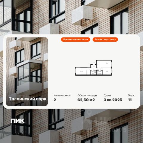 Продаётся 2-комн. квартира площадью 66 кв.м на 7 этаже 12 этажного дома (Корпус 1.1.2, Секция 2) проекта ПИК Кронштадтский 9. Светлый просторный подъезд на уровне земли, функциональная планировка, большие окна, предчистовая отделка.