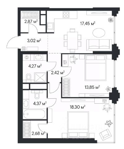 Продаётся просторная 2-комнатная квартира площадью 58,91 м², расположенная на 8 этаже корпуса 1.1 — идеальный выбор для тех, кто ценит эстетику высоты, панорамы города и современный премиум-класс. С декабря 2025 года совместно со Сбер действует ипотечная программа с фиксированной ставкой 13,9% на весь срок кредитования. Также для первой очереди строительства доступна программа рассрочки с комфортными фиксированными платежами от 60 000 рублей до конца 2026 года. Подробности — у менеджеров отдела продаж в онлайн-чате справа. Первый Нагатинский — самый крупный жилой квартал в локации, формирующий новый облик района и задающий стандарты городского премиум-класса. Проект сочетает продуманную архитектуру, премиальные общественные пространства и масштабную инфраструктуру, создавая среду, где вдохновение и удобство встречаются ежедневно. Транспортная доступность Находится в сердце Южного округа Москвы — районе с уже сложившейся и богатой инфраструктурой. Внешняя среда проекта усиливает комфорт жизни: рядом расположены зелёные парки, современные спортивные объекты, торговые центры и престижные образовательные учреждения. м. Нагатинская ~ 3 мин. МЦК Верхние котлы ~ 5 мин. Речной причал ~ 15 мин. ТТК ~ 10 мин. Садовое кольцо ~ 15 мин. Благоустройство премиального уровня Ландшафтные архитекторы бюро А4 создали систему взаимосвязанных пространств для отдыха, прогулок и гармонии. Уникальная wellness-зона вписана в природный ритм Москвы и формирует атмосферу спокойствия. • 10 000 зелёных насаждений • Японский сад • Зона у огня с биокамином • Зона у воды • Арт-тропа "Променад" • Воркаут-площадка • Гамаки для отдыха • Нетворкинг под открытым небом Инфраструктура нового поколения Квартал формирует современный формат городской жизни, объединяя приватность, удобство и пространство для развития. Всё расположено внутри проекта — без необходимости покидать территорию. • Скай-бар на 28 этаже • Гурме-вилла • Приватный СПА и фитнес премиум-класса • Тренажёрный зал и студии групповых тренировок • Хамам и финская сауна • Коворкинг-клуб • Клубный лаундж • Кинотеатр и сигарная комната • Музыкальная студия • Арт-зал с подиумом • Детские комнаты, игровые зоны и творческие студии • Круглогодичные детские площадки • Пляжный клуб на берегу Москвы-реки Образовательный кластер внутри квартала Внутри квартала созданы пространства для образования, творчества и игр, где дети могут развиваться, раскрывать таланты и чувствовать себя в безопасности — не покидая территории своего дома. Школа нового поколения на 1000 учеников Лучший детский сад в Москве с бассейном Тематическая детская площадка Гора Фудзияма и Большая волна