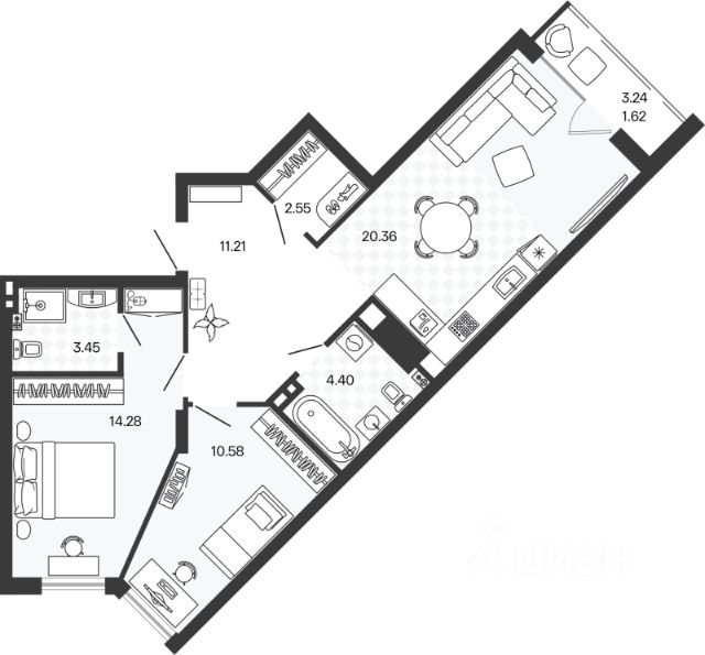 Квартира: 2 к 70,55 кв.м., 7 этаж в комплексе Аэро, 1 очередь, корп.C, сдача: 3кв. , этажей: 7, адрес Малое Исаково п., Портовый 2-й пер., д. 12, Застройщик: ГК Расцвет.