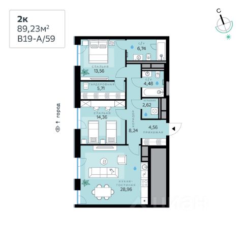 В продаже — двухкомнатная квартира, общей площадью 82,2 кв. м. Квартира расположена на шестом этаже девятиэтажного корпуса Балансд в квартале В14 нового района СберСити, который строит Сбер. Архитектуру корпусов кварталов разработало итальянское бюро. В облике отражена природная палитра: для фасадов выбраны небесно-голубой и травянистый зелёный оттенки. Декоративные металлические рамы окон и эркеры служат выразительными акцентами. Из окон открываются виды на парк и закаты над рекой. Всего в трёх минутах пешком — набережная, а рядом — главный парк СберСити. Во дворах без машин — много зелени, деревьев, кустарников и многолетних растений, детские площадки и тихие зоны отдыха. Дом возводится по технологии монолитного строительства. Фасады отделываются терракотовыми и алюминиевыми композитными панелями. В квартирах будет установлена система "умный дом", объединяющая управление квартирой, домом и прилегающей территорией. Жильцы смогут регулировать климат и освещение голосом или со смартфона, а также управлять сценариями освещения по заданным параметрам. Повышенная шумоизоляция и двухкамерные стеклопакеты с алюминиевым профилем обеспечивают комфорт и тишину. В доме предусмотрены: уютное лобби, лапомойка, колясочная и велосипедная комната на первом этаже, подземный паркинг. СберСити — это новый жилой и деловой район на западе Москвы, в одном из самых экологически чистых и престижных мест столицы. Это первая в России и крупнейшая в мире инновационная городская среда, созданная по международным стандартам зелёного проектирования. Здесь внедряются решения в области энергоснабжения, вакуумного мусороудаления, тестирования зелёных технологий, а в дальнейшем — системы искусственного интеллекта для управления домами и городской инфраструктурой. Строительство проекта началось в 2021 году, заселение первых корпусов — с лета 2024-го. Общая площадь территории — 461 га, из них более 2,5 млн кв. м жилья и около 833 тыс. кв. м офисных пространств. Будет построено 7 школ, 13 детских садов и 2 поликлиники. В СберСити будут жить 65 тыс. человек и работать 70 тыс. Развитием территории занимается АО "Рублёво-Архангельское", входящее в группу Сбер. СберСити — место, где хочется жить, работать и растить детей. Переезжайте в СберСити!