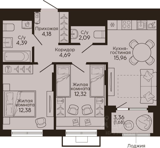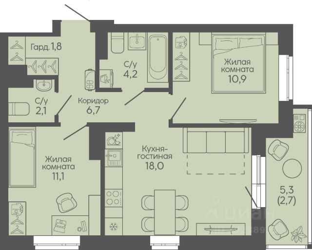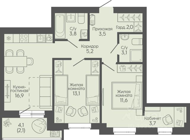 • ✓ В базе Циан 199 2-комнатных квартир от застройщика Синара–Девелопмент в Москве