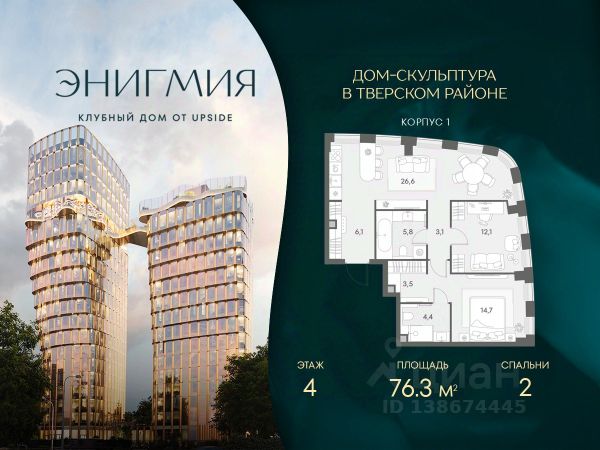 Продаётся 2-комнатная квартира площадью 58.13 кв.м на 3 этаже 46 этажного корпуса Монте Бьянко в квартале небоскребов "Апсайд Тауэрс". В квартире предчистовая отделка, с видом на Звездный бульвар, Ольгинский храм, корпус Эверест. Номер квартиры Г0306. На первых этажах корпуса Монте Бьянко разместятся: фитнес студия, салон красоты, центр превентивной медицины, образовательные классы, книжный магазин, аптека, фермерская лавка, а также келлеры для хранения сезонных вещей. В приватном закрытом дворе разместятся разнообразные площадки для прогулок, игр и отдыха. Визитной карточкой двора станет уникальная биометрическая игровая пещера со сказочными тоннелями, горками и космическими "мягкими" камнями с неизведанных планет. Планету Земля дети смогут исследовать в павильоне круглый год: объемная крыша укроет от солнца и дождя. Игровая пещера будет реализована в стиле "эмоциональная архитектура". "Апсайд Тауэрс" - технологичный квартал строится в динамично развивающемся Бутырском районе, в 3 мин. от метро, в 5 мин. от ТТК. На территории 7 га возводится 5 высотных башен от 19 до 58 этажей, названных в честь главных вершин земли. Квартиры с панорамными окнами в пол, высокими потолками и современными инженерными решениями. В проекте: - приточновытяжная вентиляция (воздух по качеству не уступает горному); - пятиступенчатая очистка воды с сохранением полезных минералов; - центральное кондиционирование; - внутрипольные конвекторы; - системы безопасности и мониторинга микроклимата; - высокоскоростной интернет на всей территории; - подземный паркинг с зарядками для электрокаров. Социальная инфраструктура: - Upside Клуб (более 2 000 м²) — спацентр на 47м этаже башни "Атлас" (джакузи, сауна, залы для релаксации и йоги), барбекюпатио, гостиная с камином и роялем, коворкинг, переговорные, домашний кинотеатр и др.; - смотровые террасы с видами на город, парки, Останкинскую башню, ВДНХ, Ботанический сад и МосквуСити; - ландшафтный парк 2,5 га с сенсорным садом, игровыми и спортивными площадками; - государственная школа и детский сад; - более 15 000 м² коммерческой инфраструктуры. Бутырский район развивается и станет новым деловым районом Москвы. По программе "Индустриальные кварталы" на территории Огородного проезда построят образовательные и спортивные учреждения, торговые центры, кафе, банки и общественноделовые здания. Рядом — Парк Останкино, ВДНХ, Сокольники, Гончаровский парк, дизайнзавод Flacon и "Хлебозавод". До центра Москвы на авто — 15 мин. Застройщик: ООО "СЗ "КДевелопмент" (Upside Девелопмент).
