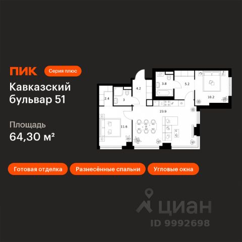 Продаётся 2-комн. квартира площадью 52,7 кв.м на 4 этаже 24 этажного дома (Корпус 3.5, Секция 2) проекта ПИК Кавказский бульвар 51. Светлый просторный подъезд на уровне земли, функциональная планировка, большие окна, предчистовая отделка. "Кавказский бульвар 51" — современный жилой квартал в районе Царицыно. Проект частично реализован и находится в районе Царицыно, недалеко от одноимённого музея-заповедника. До метро "Кантемировская" — 17 минут пешком. За 20 можно дойти до станции "Чертаново". В 10 минутах на машине — МКАД, в 11 минутах — Варшавское шоссе, а в 16 минутах — ТТК. В проекте жилые дома высотой от 5 до 33 этажей, детский сад и школа. На первых этажах доступны магазины, кафе, салоны красоты и другие сервисы — чтобы купить кофе и свежий хлеб к завтраку, можно просто спуститься на лифте. В уютных дворах-парках есть места для отдыха и детские площадки. Для прогулок на свежем воздухе мы построим для жителей широкий пешеходный бульвар. В районе вокруг "Кавказского бульвара 51" есть всё для комфортной жизни: детские сады, школы, поликлиники, магазины и торговые центры. Девять минут на машине — и вы у музея-заповедника "Царицыно", где можно гулять среди исторических построек, лежать на траве под тенью деревьев или заниматься спортом на специальных площадках. Есть парки и поближе: до Аршиновского можно дойти за 8 минут, а до парка "Сосенки" — за 13 минут. Артикул 998483 (Застройщик АО "СПЕЦИАЛИЗИРОВАННЫЙ ЗАСТРОЙЩИК "ТОРГОВЫЙ ДОМ СПУТНИК") Купить 2-комнатную квартиру с отделкой в районе Царицыно в Москве.
