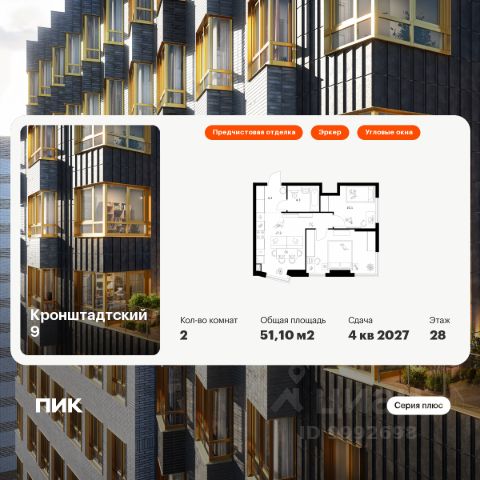 Продаётся 2-комн. квартира площадью 66 кв.м на 7 этаже 12 этажного дома (Корпус 1.1.2, Секция 2) проекта ПИК Кронштадтский 9. Светлый просторный подъезд на уровне земли, функциональная планировка, большие окна, предчистовая отделка. Жилой квартал "Кронштадтский 9" возводится в Головинском — в одном из районов с лучшей экологией в Москве. Совсем рядом станция метро "Водный стадион" — до неё 3 минуты пешком. Поездка на машине до Ленинградского шоссе займёт 2 минуты, до ТТК — 10 минут, а до МКАД — 16 минут. Недалеко от жилого квартала находятся парки и пруды — спокойные места для прогулок и отдыха. В "Кронштадтском 9" можно купить квартиру в уже готовом корпусе и сразу получить ключи. В проект входит 10 корпусов с просторными и светлыми подъездами, два детских сада и подземный паркинг. Внутри квартала будут уютные дворы-парки с детскими площадками и местами для отдыха. А чуть дальше, чтобы шум не беспокоил жителей домов, мы построим спортивные площадки. Во всех квартирах в этом проекте предчистовая отделка, с которой легче реализовать ваши дизайнерские идеи. В районе, где строится "Кронштадтский 9", есть всё для комфортной жизни: школы, сады, вузы, магазины и крупные торговые центры "Водный" и "Метрополис". В 15 минутах ходьбы — парк у Головинских прудов, в 18 минутах — парк "Дружба". Оба для прогулок, пробежек и отдыха от дома и работы. Ключевая особенность новых корпусов проекта — это особый архитектурный образ, разработанный бюро М.А.М. Здания привлекают внимание контрастом светлых фасадных поверхностей с тёмными, более детализированными элементами. Архитектурные приёмы формируют связь с городским контекстом: низкоэтажные корпуса естественно вписываются в окружающий ландшафт, в то время как 32-этажная башня добавляет вертикальный акцент, усиливающий общий облик квартала. В "Кронштадтском 9" умные планировки: вы сами выбираете, как их использовать, чтобы ваша квартира была максимально комфортной именно для вас. Например, постирочная может стать студией звукозаписи, а зона для гардероба — кабинетом. В новых корпусах есть квартиры с кухней-нишей, сквозным санузлом и мастер-спальней с собственной ванной. Квартиры продаются с предчистовой отделкой. Это значит, что к моменту получения ключей в доме уже закончатся самые грязные и шумные работы, а вам будет легче реализовать дизайнерские идеи. Рядом с проектом есть всё необходимое. В паре минут пешком — торговые центры "Гавань" и "Водный", а в 7 минутах на машине — большой ТРЦ "Флотилия". В шаговой доступности аптеки и детская городская поликлиника. Доехать до взрослой поликлиники можно за несколько минут. Вокруг несколько интересных мест для прогулок, в том числе с детьми. Можно арендовать лодку или просто понаблюдать за плывущими яхтами и парусниками на Северном речном вокзале, побродить по парку возле усадьбы Грачёвки или сходить в музей охоты и рыболовства. Артикул 967457 (Застройщик АО "Специализированный застройщик МАК8") 2-комнатная квартира с отделкой в районе Головинский в Москве.