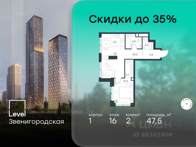 10 минут от Москва-Сити В продаже квартира площадью 72.90 м² с предчистовой отделкой на 26 этаже 55 этажного дома. Квартира расположена в корпусе Anna. JOIS это премиальный жилой комплекс от девелопера MR Group в районе Хорошёво-Мнёвники. Он включает несколько эффектных небоскрёбов высотой 47-56 этажей, эксклюзивные форматы квартир с панорамным остеклением, подземный двухуровневый паркинг на 239 м/м, собственную приватную инфраструктуру, закрытый ландшафтный парк 2,3 Га с функциональным зонированием и охраняемой территорией. Над проектом работали лучшие команды международных агентств с многолетним опытом: Genpro, S&P, iLight International и другие. Расположение Пешком: - 5 мин. ст. МЦК "Хорошёво"; - 15 мин. ст. м. "Народное ополчение"; - 10 мин. ст. метро "Звенигородская" с 2027 года; - 20 мин. причал "Карамышевский". На автомобиле: - 3 мин. до Звенигородского шоссе; - 5 мин. до ТТК: - 8 мин. до Серебряного бора и Строгинского затона - 10 мин. до ММДЦ "Москва-Сити"; - 40 мин. до аэропорта "Шереметьево"; Благоустройство - собственный ландшафтный парк 2,3 Га; - парк скульптур от Cosmoscow; - консьерж-сервис 24/7; - сервисный лифт и вход; - игровые и спортивные площадки; - коворкинг с библиотекой; - лаунж-зона с камином; - игровые комнаты для детей и клуб для подростков с оборудованием для видеоигр; - спортивная студия для индивидуальных тренировок; - гостиная с мини-кухней; - зоны для выгула собак; - подогрев пешеходных дорожек в зимний период; - автополив зелёных насаждений; - премиальные рестораны, кафе, химчистки, аптеки и супермаркеты. Окружение - 4 парка: Покровское-Стрешнево, Филёвский парк, Серебряный бор и Берёзовая роща; - 15 общеобразовательных заведений, в том числе две школы из самых лучших в Москве: государственная школа "Интеграл" и частная "Хорошкола"; - спортивное сооружение "ВЭБ Арена", домашний стадион ФК ЦСКА; - крупнейший в Европе торгово-развлекательный центр "Авиапарк". Купить 2-комнатную квартиру с отделкой в районе Хорошево-Мневники в Москве.