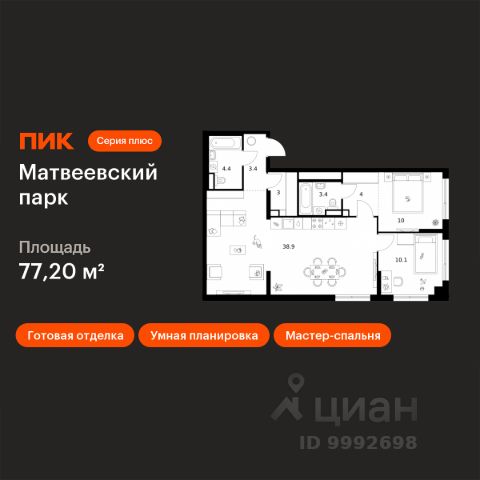 О квартире Продаётся 2-комнатная квартира общей площадью 57.4 кв.м. с отделкой white box. Квартира расположена на 7 этаже корпуса 5.1 в жилом комплексе бизнес-класса "Среда на Лобачевского" в пешей доступности от метро "Аминьевская". О жилом комплексе "Среда на Лобачевского" полностью соответствует критериям современного жилого пространства. Взяв за основу рациональный подход, мы гармонично соединили дизайн, актуальные тренды и функциональность. Продуманный современный экстерьер и функциональные планировки внутри, приватные пространства и разнообразные досуговые зоны для каждого члена семьи — все это "Среда на Лобачевского". Инфраструктура Район отлично развит и наполнен жизнью, здесь уже есть вся необходимая инфраструктура — детские сады, школы, медучреждения, торговые центры, благоустроены парки для прогулок и отдыха, удобен и легкодоступен городской транспорт. Рядом расположены учебные корпуса крупных университетов — МГУ, МГИМО и РАНХиГС. Школы и детские сады в районе занимают высокие позиции в городских рейтингах, поэтому вам не придется беспокоиться о качестве образования детей. Как и об отдыхе: поблизости расположены живописные пруды, реки и парки. Это Парк Олимпийской деревни, Парк имени 50-летия Октября, Мещерский парк и Очаковские пруды. Теперь поставить галочки в еженедельном чек-листе "спорт-прогулки-встречи с друзьями" можно, не покидая любимый район. Особенности Особое внимание в проекте уделяется созданию функциональных пространств не только внутри дома, но и за его пределами. В ландшафтном парке "Среды на Лобачевского" расположены крытые зоны для спокойного времяпровождения, места для активного отдыха и спорта, коворкинг, соседский комьюнити-центр, водные объекты. —Ландшафтный парк во дворе. —Водный сад с зонами отдыха. —Зоны коворкинга. —Дизайнерские гранд-лобби. —Бесключевой доступ. —Подземный паркинг.