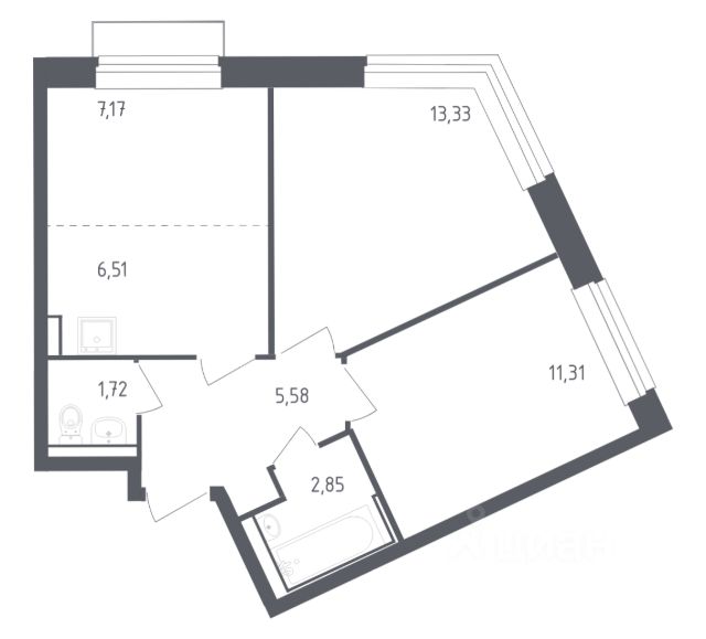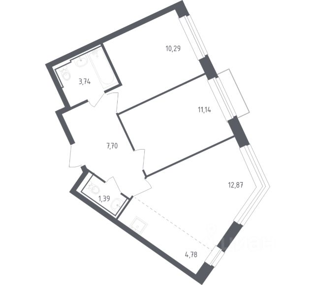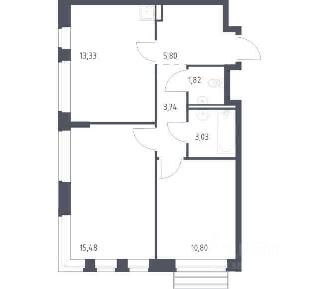 Продается 2-комн. квартира площадью 52,6 кв.м на 3 этаже 21 этажного дома в ЖК "Союзный" от федерального девелопера ГК "Вектор".