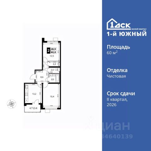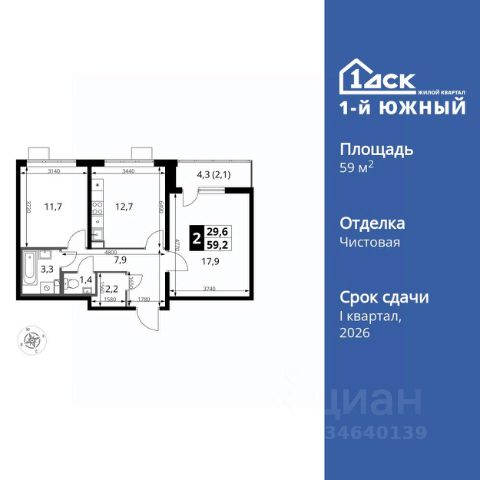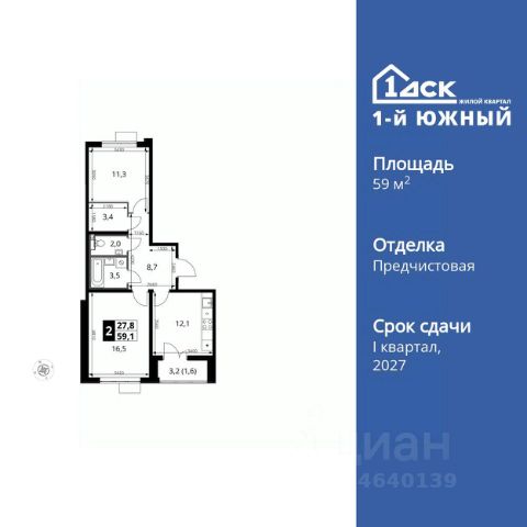 УСПЕЙ ПО СЕМЕЙНОЙ ИПОТЕКЕ БЕЗ НАЦЕНКИ! Квартиры с отделкой от 40 000 рублей в месяц! Прямая продажа от застройщика! Жилой Комплекс класса Комфорт Плюс. Продаётся 2-к квартира номер 25 общей площадью 59.1 кв.м. на 8-м этаже 24 этажного здания. Отделка Whitebox. Особенности квартиры: - МЦД-5 в пешей доступности - Квартал с южным садом - Свои 3 детских сада и 2 большие школы - Распашная планировка - отличное сочетание удобства и свободы. - Раздельный санузел - больше удобства для всех членов семьи. - Линейная кухня - функциональность и практичность в одном решении. - Гардеробная - удобство для хранения и организации вещей. - Лоджия - уютное место для отдыха и тишины. Квартира с предчистовой отделкой (White box). Вам не придется заниматься черновыми и трудоёмкими работы, а чистовую отделку и дизайн - сделайте на свой вкус. Информация о комплексе: Одно из преимуществ проектов 1- ДСК большие застекленные лоджии. Другое преимущество честный евро-формат. Во всем проекте предусмотрена система Умный дом. В состав устанавливаемого пакета устройств входит: WiFi реле для управления группами потребителей, беспроводной кран перекрытия с эл. приводом, беспроводной сенсор протечки, Яндекс Станция Мини. Его расположение можно назвать удачным за счет транспортной доступности и близости к природным объектам. По соседству лес, а в каждом дворе плодовые деревья. Весной квартал окутывает бело-розовое облако: это цветут яблони, груши, сливы. К августу в воздух наполняется ароматом созревших плодов. Зимой среди покрытых инеем деревьев протянулась лыжня. Транспортная доступность: - Общественный транспорт: Действующая ж/д станция Булатниково (в перспективе будущая МДЦ D5) в пешей доступности, всего 10-12 минут. - Личный автотранспорт: Удобный выезд на трассу М4-Дон в сторону Москвы и области 850 м, до МКАД - 1 км Внутренняя инфраструктура: Красивые продуманные подъезды - еще одно преимущество проекта 1-й Южный. Вход в сквозные подъезды есть и с улицы, и со двора. Благодаря сплошному остеклению в них всегда светло и уютно. Подъезды расположены на уровне земли, поэтому и молодым родителям с коляской, и жильцам с ограниченными возможностями вход и выход неудобств не доставят. В помещении предусмотрено место под стойку ресепшен с выводом инженерных сетей. Если жильцы решат на общем собрании, что необходим охранник или консьерж, организовать для них рабочее место можно быстро и с минимальными затратами. В подъездах предусмотрены уборные для детей и взрослых. Колясочные в каждом подъезде позволяют поддерживать порядок и чистоту на этажах. На случай прогулки с четвероногим питомцем в непогоду в подъездах устроены лапомойки. Во дворах и на общественных территориях 1-ого Южного столько всего интересного для юных обитателей. Собственные 3 детских сада и 2 больших школы буквально под окнами Изюминка проекта - пешеходный бульвар-дендрарий, он идеален для семейных прогулок. По сторонам прогулочной зоны разместились точки для самых разнообразн