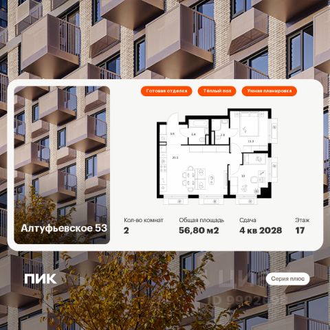 Продаётся 2-комн. квартира площадью 50,4 кв.м на 19 этаже 32 этажного дома (Корпус 1.1, Секция 2) проекта ПИК Алтуфьевское 53. Светлый просторный подъезд на уровне земли, функциональная планировка, большие окна, c отделкой. Проект "Серии плюс" возводится на северо-востоке Москвы. Рядом — удобный выезд на Алтуфьевское шоссе, а оттуда — на ТТК и МКАД, так что до центра Москвы вы доедете на машине примерно за 20 минут. До станции метро "Отрадное" можно доехать на транспорте за 15 минут. За 20 минут получится доехать до станции "Бибирево". Столько же займёт прогулка до станции МЦД "Дегунино". Архитектурную концепцию проекта разработало российское бюро M.A.M. Искусная работа с формой зданий позволила проекту воплотить в себе современную элегантность и функциональность. В проекте представлено множество планировок семейного формата: с мастер-спальнями и комнатами, разнесёнными по разным сторонам квартиры, чтобы у каждого было своё личное пространство. Большие семьи также оценят удобные планировки с постирочными и гардеробными. А также уникальные форматы квартир с террасами, балконами и лоджиями. В проект входят монолитные дома, два детских сада и подземный паркинг. На территории будет городская школа. Во дворах мы построим уютные парки с детскими площадками и местами для отдыха. Здесь вы сможете даже смотреть кино и работать — для этого во дворах-парках будет Wi-Fi. Чуть дальше от домов мы разместим спортивные площадки, чтобы шум от них не мешал жителям. В тихих и быстрых лифтах будут усилители связи, чтобы она не прерывалась и жители продолжали говорить по телефону или проверять соцсети даже перемещаясь между этажами. В окружающем районе есть всё для комфортной жизни: детские сады, школы, торговые центры, парки для прогулок, фитнес-клубы и даже бассейн. Артикул 1004020 (Застройщик ООО СЗ "Перспективные решения")