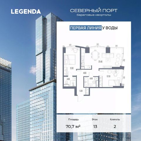 Продается 2-комн. квартира с предчистовой отделкой в ЖК "Северный Порт" на 17 этаже. Общая площадь: 64.8 кв.м., жилая: 25.5 кв.м., площадь просторной кухни-столовой: 24.9 кв.м. Комнаты изолированные, все окна выходят на одну сторону. В квартире один раздельный санузел. Высота потолков 3.15 м. Квартира находится в корпусе 7.1. Дом монолитный, одноподъездный, высотой 34 этажа. На этаже 14 квартир. В подъезде 3 пассажирских и 3 грузовых лифта. Окончание строительства - 1 квартал 2028 года. Оформление сделки по договору долевого участия. В шаговой доступности от дома расположены станции метро (расстояние по прямой): "Беломорская" (1.1 км), "Планерная" (1.5 км), "Речной вокзал" (1.6 км), также недалеко от этого корпуса расположена станция метро "Ховрино". В проекте "Северный Порт" реализованы авторские решения девелопера LEGENDA, которые представлены уникальными фасадными решениями, коллекцией дизайнерских квартир, а также инновационным оснащением комплектацией TechnoBox - полностью технологически подготовленным пространством для любых современных сценариев жизни. В 1-ой очереди строительства проекта "Северный Порт" авторская комплектация TechnoBox представлена в корпусах 7.1 и 7.3 и включает в себя два направления: Технологически подготовленное пространство: - Smart Home Ready - стационарное и удаленное управление квартирой. - Air Design - всегда свежий воздух, никакого шума и пыли. - Мультизональное кондиционирование. - Мультисервисная сеть - единая сеть коммуникационных систем. Готовность к декорированию: - Шумоизоляция - комплексные меры для защиты от лишнего шума. - Подготовка стен - все стены подготовлены к отделке дизайнерскими материалами. - Выровненный пол - полы выровнены стяжкой из цементно-песчаной смеси, повышающей механическую прочность, и готовы к укладке покрытия. - Электрические сети - коммуникации расположены с учетом рекомендаций по расстановке мебели и техники. "Северный порт" от LEGENDA входит в крупномасштабный проект комплексного развития территории Северного речного порта, реализуемый правительством Москвы, и представляет собой микс жилой, коммерческой, социальной и общественной инфраструктуры. Автором концепции обустройства территории выступило архитектурное бюро Сергея Скуратова. Созданный дизайн-код лёг в основу проекта, разработанного LEGENDA совместно с архитектурным бюро KAMEN Architects. Город ставит новый акцент, создавая мощный центр притяжения в экологичной локации у Северного речного вокзала. Близость к воде, парковым зонам и футуристичный архитектурный образ определяют потенциал развития проекта на несколько десятилетий вперед. Важной частью проекта станет строительство самой протяженной благоустроенной набережной, которая соединится с парком Северного речного вокзала и создаст уникальное прогулочное пространство длиной 3,2 км, вдоль которого будет организован современный торговый променад. В основе концепции благоустройства лежит авторская модель проектирования дворо
