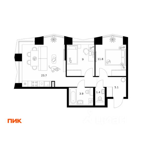 Трехкомнатная евроквартира для большой семьи. -Угловая планировка с видом на 2 стороны -Приватная изолированная спальня с зоной гардеробной -Отдельная уютная детская комната -В квартире предусмотрено классическое остекление с эркерами -Второй санузел для удобства каждого члена семьи -Просторная кухня-гостиная угловым остеклением для семейных торжеств -Отдельная постирочная с местом для хранения бытового инвентаря -Ниша в коридоре для системы хранения Молодой район для жизни "Акценты" в классе бизнес-лайт — точка роста на севере Москвы. Он предлагает элегантные и строгие фасадные решения, авторский ландшафтный дизайн, а также функциональные и доступные по цене планировки. Проект находится в семи минутах пешком от станции метро "Лианозово" и одноименной МЦД-1. Добраться до МКАД можно будет за 10 минут на авто, а дорога до центра займет около 20 минут. Жилой комплекс, расположенный в районе Восточного Дегунино, предлагает развитую инфраструктуру для тех, кто ценит выбор. Он имеет удобный доступ не только к транспорту, но и к паркам, школам, садам, больницам и другим социальным объектам. В пешей доступности находятся 4 поликлиники, 5 школ, 6 детских садов, 3 бассейна и баскетбольная академия. Еще рядом есть несколько лесопарков: "Лианозово" с аттракционами и спортивными площадками для тенниса, волейбола и баскетбола, "Останкино" с конным клубом, прудом и пейнтбол-площадками. А "Северные Дубки" — это завораживающее пространство для прогулок под кронами вековых дубов, берез и лип. Кроме того, в районе не будет скучно и юным жителям. Можно оттачивать трюки в скейтпарке "Союз". Ловким и прыгучим советуем записаться в акробатический центр "Белка".