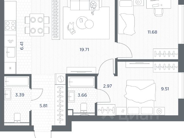 Успейте купить со скидкой 14%! Продается 2-к квартира общей площадью 65.85 м2 с предчистовой отделкой в ЖК премиум-класса ТАТЕ на 16-м этаже 41-этажной башни Б. ТАТЕ — жилой комплекс премиум-класса в историческом районе Марьина Роща на границе СЗАО и ЦАО. Две минималистские башни (41-49 этажей) с панорамными видами на Москву, Инфраструктура: светлые лобби с потолками 6 м, арт-лестница на террасу. Спа, фитнес с бассейном, детские/спортивные площадки. Трехуровневое благоустройство от WOW HOUSE. Доступ в жилой комплекс осуществляется по биометрическому контролю. Преимущества: - Авторский минимализм от ГК "КОРТРОС" (топ-10 RAEX) - Панорамные окна, потолки 3,02-4,5 м - Предчистовая отделка - Лаундж на 39 этаже для резидентов с панорамными видами на Останкино, ВДНХ - 6 скоростных лифтов (45 сек на этаж) - Безбарьерная среда, арт-пространства - Спа/фитнес, бассейн, паркинг с сервисами - Закрытая территория с видеонаблюдением и консьерж-сервисом 24/7 - Подземный паркинг на 545 машиномест с зарядками для электромобилей Транспорт: - 5 мин пешком до МЦД-2 - 5 мин до метро "Марьина Роща" - 15 мин до центра Москвы на автомобиле - 10 мин до ТТК - 20 мин до Москва-Сити