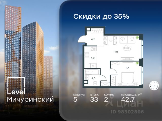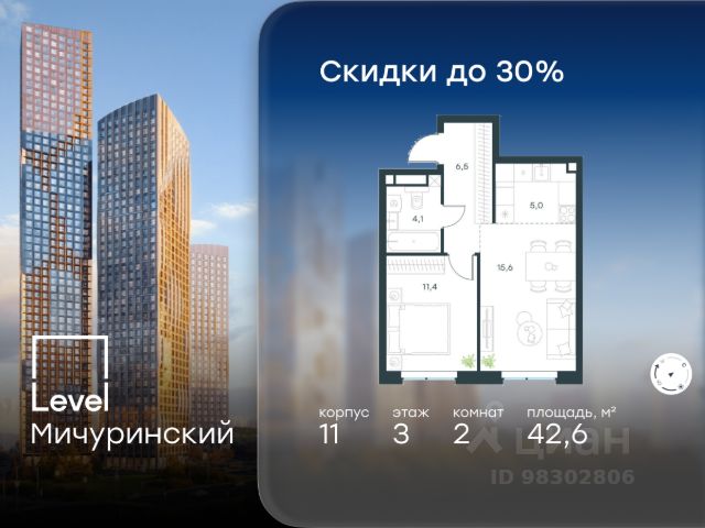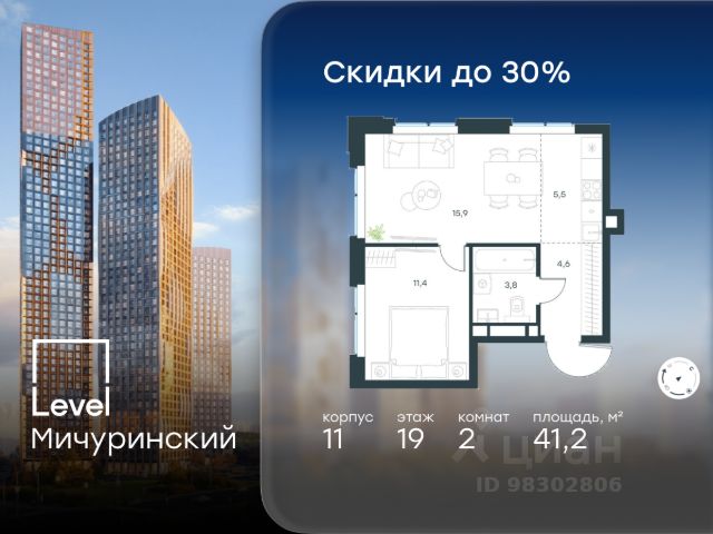 Цена указана с учётом скидки при 100%-й оплате, несубсидированной ипотеке, рассрочке (кроме программы "Рассрочка 0%"). В жилом квартале, расположенном на границе с природным заказником "Долина реки Очаковки", продаётся 2-комнатная квартира площадью 40.70 кв.м с отделкой white box. Квартира расположена на 11 этаже 24-этажного корпуса 11 в жилом комплексе бизнес-класса Level Мичуринский (компания Level Group/Левел групп). Отличная транспортная доступность - 10 мин. пешком до станции метро "Мичуринский проспект" - 15 мин. пешком до станции метро "Аминьевская" - 7 мин. на авто до МКАД - 10 мин. на авто до ТТК - 15 мин. на авто до Москва-Сити Продуманный архитектурный проект - Выразительная архитектура от известных бюро: корпуса 1-6 - СПИЧ, корпуса 7-13 - Borisov Architects; - Из окон открываются живописные виды на парки, Москва-Сити и МГУ; - Высокие потолки до 6,35 м; - Стильные лобби с окнами в пол и высокими потолками до 4,7 м; - С каждого этажа дома на лифте можно спуститься в подземный отапливаемый паркинг. Расположение Level Мичуринский строится в одном из самых зеленых районов Москвы - Очаково-Матвеевское. Этот уголок столицы идеален для поддержания здорового образа жизни. В шаговой доступности от проекта находятся заказник "Долина реки Очаковки" - 1 мин. пешком и Очаковский парк - 7 мин. пешком. На велосипеде можно добраться до таких парков, как "Событие", парк Олимпийской деревни, парк 50-летия Октября и парк Школьников. В 15-минутной доступности на авто расположено более 30 детских садов (из них 14 в пешей доступности), 32 школы (из них 13 в пешей доступности) и 14 вузов. В ближайшем окружении работает более 25 медицинских учреждений, 11 спортивных клубов и 22 продуктовых супермаркета. Внутренняя инфраструктура На территории жилого комплекса строится три детских сада и школа. На первых этажах домов откроется супермаркет, фитнес-центр, ресторан, кафе и другие сервисы. Подземные этажи займут паркинги: трехуровневые в этапах 1 и 2, одноуровневый в этапах 3 и 4. Преимущества проекта - 4,5 га благоустроенной территории с видовым мостом, уличным кинотеатром, зонами для тихого отдыха, работы, воркаута, площадки для петанка, футбола, настольного тенниса и пляжного волейбола; - Дизайнерские лобби с панорамным видом на двор, мойками для лап животных и комфортными зонами ожидания. - Безопасность жителей: круглосуточное видеонаблюдение всех зон общего пользования (лобби, лифты, паркинги, детские площадки), система контроля доступа, управление видеодомофоном через мобильное приложение, единый ключ доступа на территорию жилого комплекса. - Технологии и комфорт: высокоскоростной Wi-Fi в лобби и на придомовой территории, автоматическая система контроля и учета ресурсов, абонентская связь с консьержем, распознавание номеров автомобилей при въезде/выезде в/из паркинга. Купить 2-комнатную квартиру с отделкой рядом с метро Мичуринский проспект.