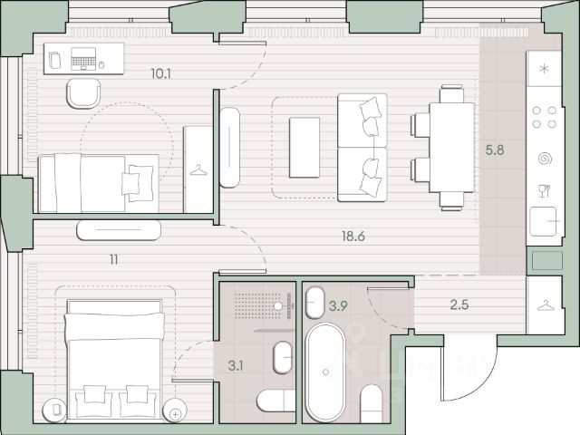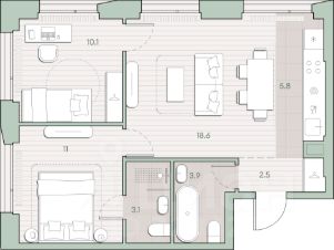 О квартире Продаётся 2-комнатная квартира общей площадью 57.4 кв.м. с отделкой white box. Квартира расположена на 3 этаже корпуса 5.2 в жилом комплексе бизнес-класса "Среда на Лобачевского" в пешей доступности от метро "Аминьевская". О жилом комплексе "Среда на Лобачевского" полностью соответствует критериям современного жилого пространства. Взяв за основу рациональный подход, мы гармонично соединили дизайн, актуальные тренды и функциональность. Продуманный современный экстерьер и функциональные планировки внутри, приватные пространства и разнообразные досуговые зоны для каждого члена семьи — все это "Среда на Лобачевского". Инфраструктура Район отлично развит и наполнен жизнью, здесь уже есть вся необходимая инфраструктура — детские сады, школы, медучреждения, торговые центры, благоустроены парки для прогулок и отдыха, удобен и легкодоступен городской транспорт. Рядом расположены учебные корпуса крупных университетов — МГУ, МГИМО и РАНХиГС. Школы и детские сады в районе занимают высокие позиции в городских рейтингах, поэтому вам не придется беспокоиться о качестве образования детей. Как и об отдыхе: поблизости расположены живописные пруды, реки и парки. Это Парк Олимпийской деревни, Парк имени 50-летия Октября, Мещерский парк и Очаковские пруды. Теперь поставить галочки в еженедельном чек-листе "спорт-прогулки-встречи с друзьями" можно, не покидая любимый район. Особенности Особое внимание в проекте уделяется созданию функциональных пространств не только внутри дома, но и за его пределами. В ландшафтном парке "Среды на Лобачевского" расположены крытые зоны для спокойного времяпровождения, места для активного отдыха и спорта, коворкинг, соседский комьюнити-центр, водные объекты. —Ландшафтный парк во дворе. —Водный сад с зонами отдыха. —Зоны коворкинга. —Дизайнерские гранд-лобби. —Бесключевой доступ. —Подземный паркинг.