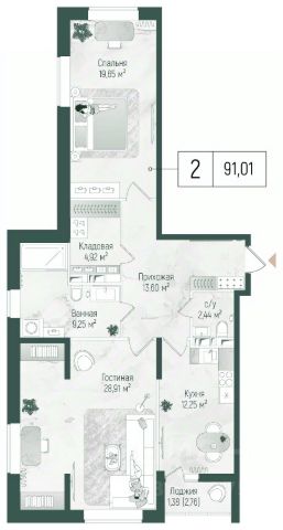 Продается в строящимся доме квартира-распашонка с удачным видом и счастливым этажом. Две комнаты с видом на лес и кухня-гостиная во двор. Предчистовая отделка.