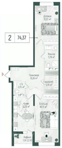 Продаётся 2-комнатная квартира 1779, площадью 36,94 м², на 18 этаже в ЖК "Ильинойс" корпус 3. Стоимость — от 11035677 руб. Квартира с отделкой, планировка односторонняя, окна во двор.